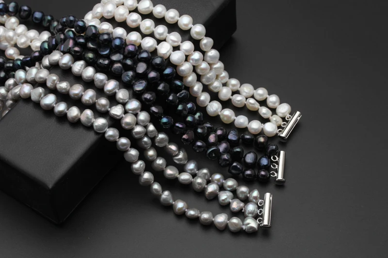 Black/Gray/white Natural Baroque Multi-layer pearl Necklace Real Freshwater pearl jewelry for women gift