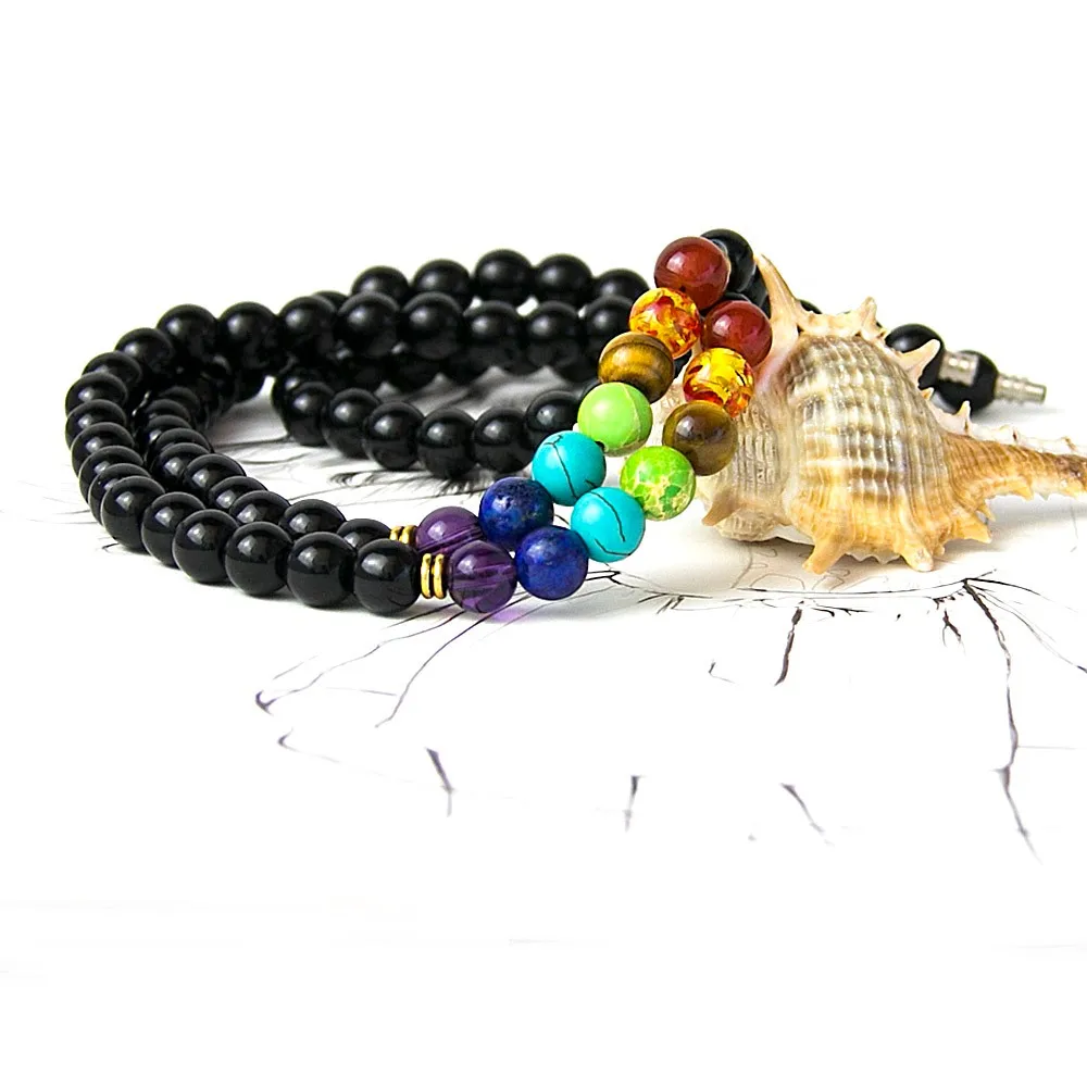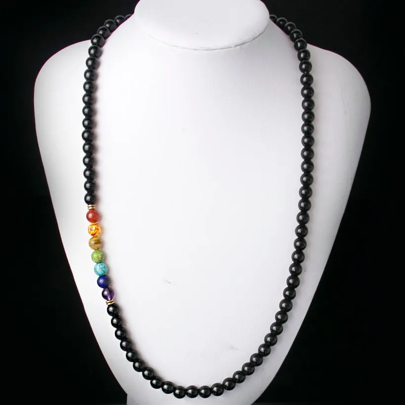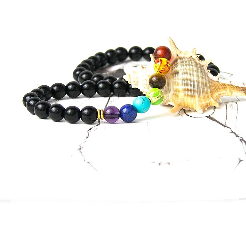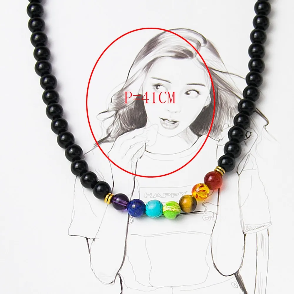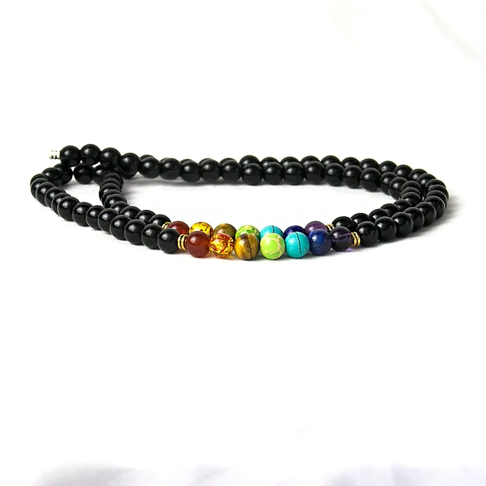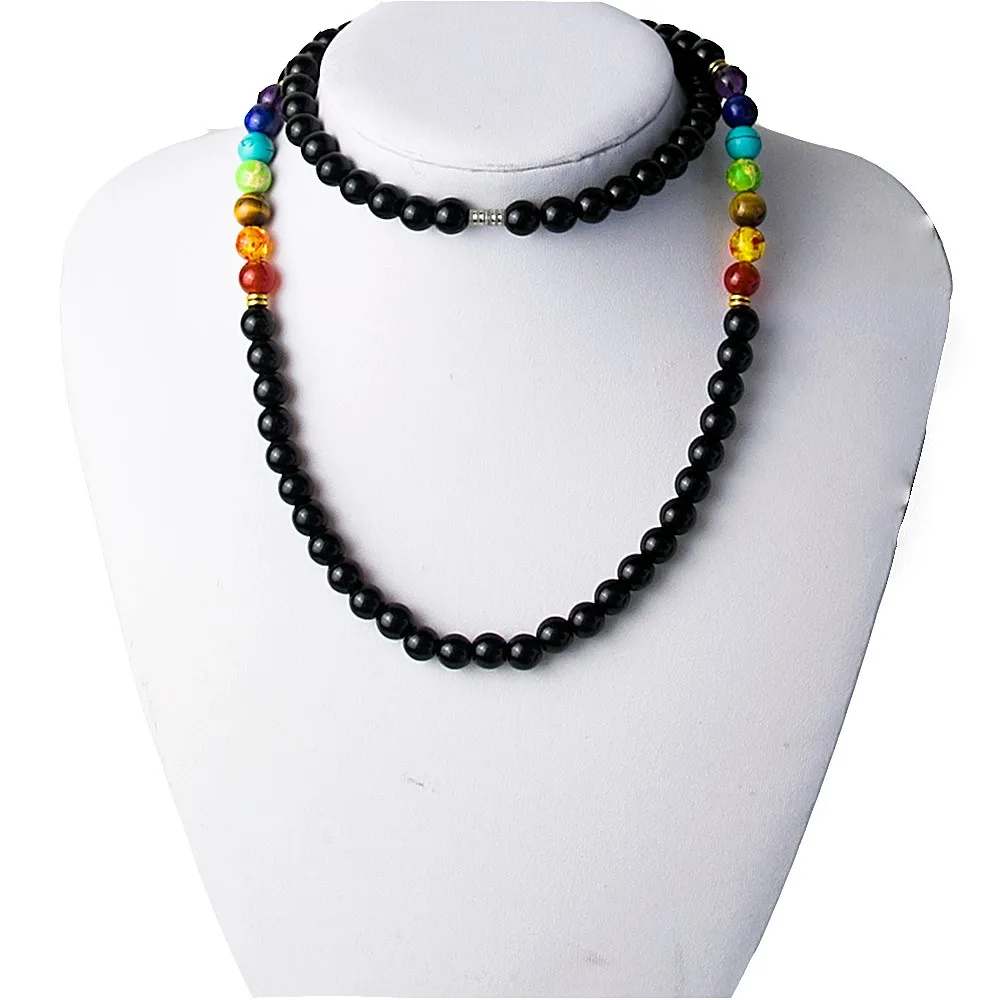 Black Onyx 8MMM Beads Necklace Women 7 Chakra Multicolor For Wisdom Natural Stone Yoga Meditation Necklace,Christmas Gifts