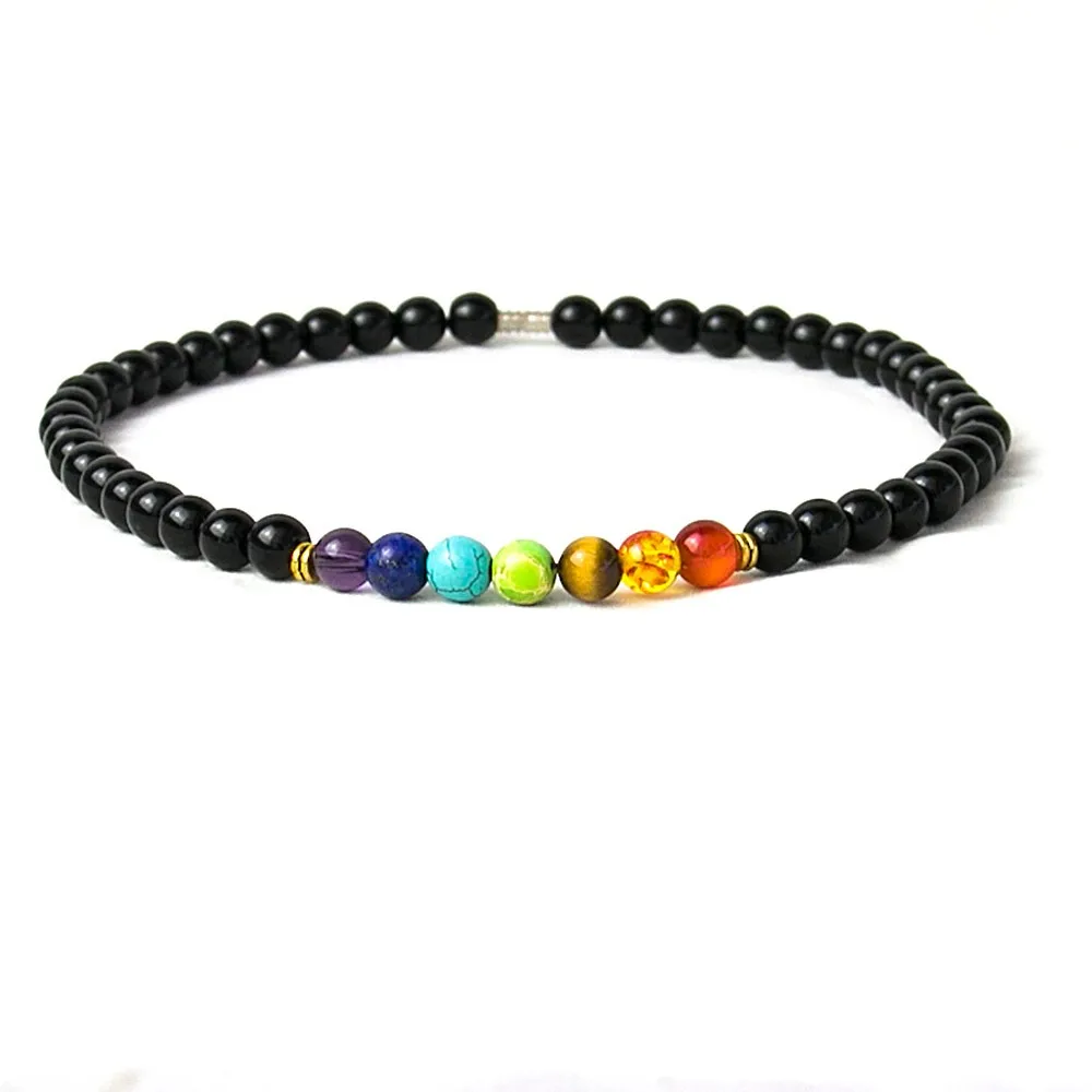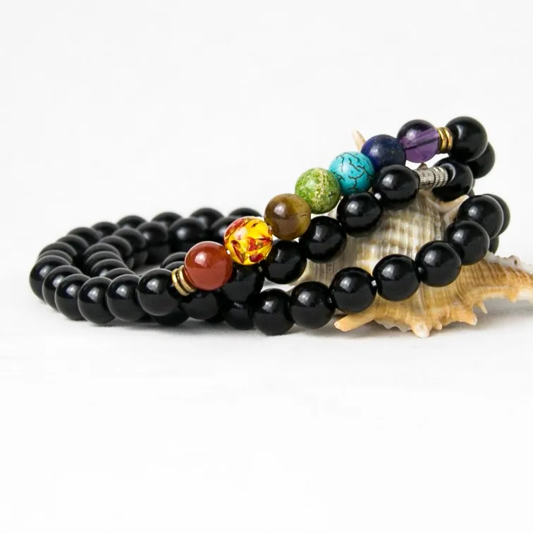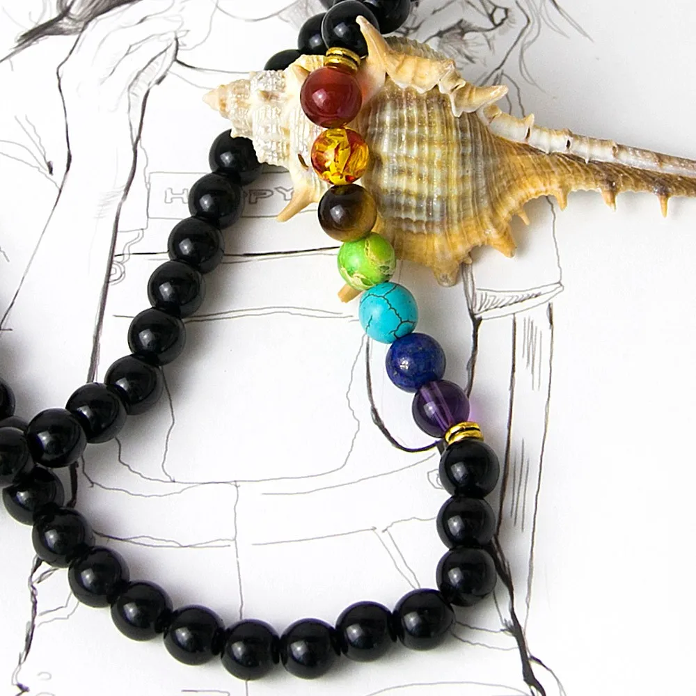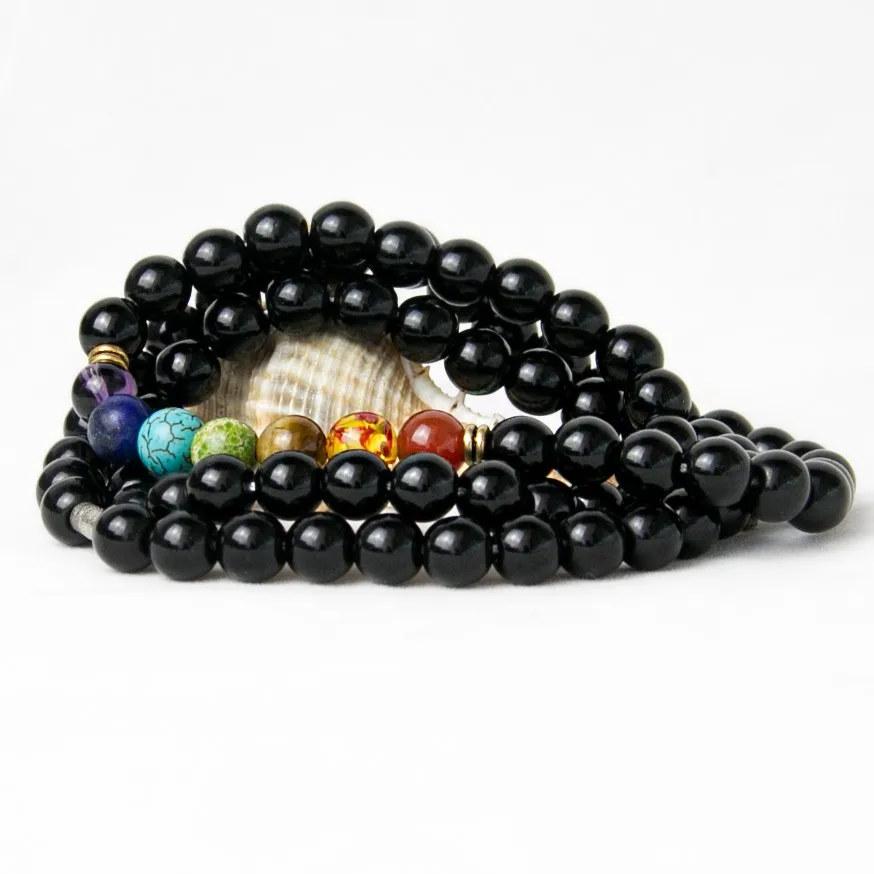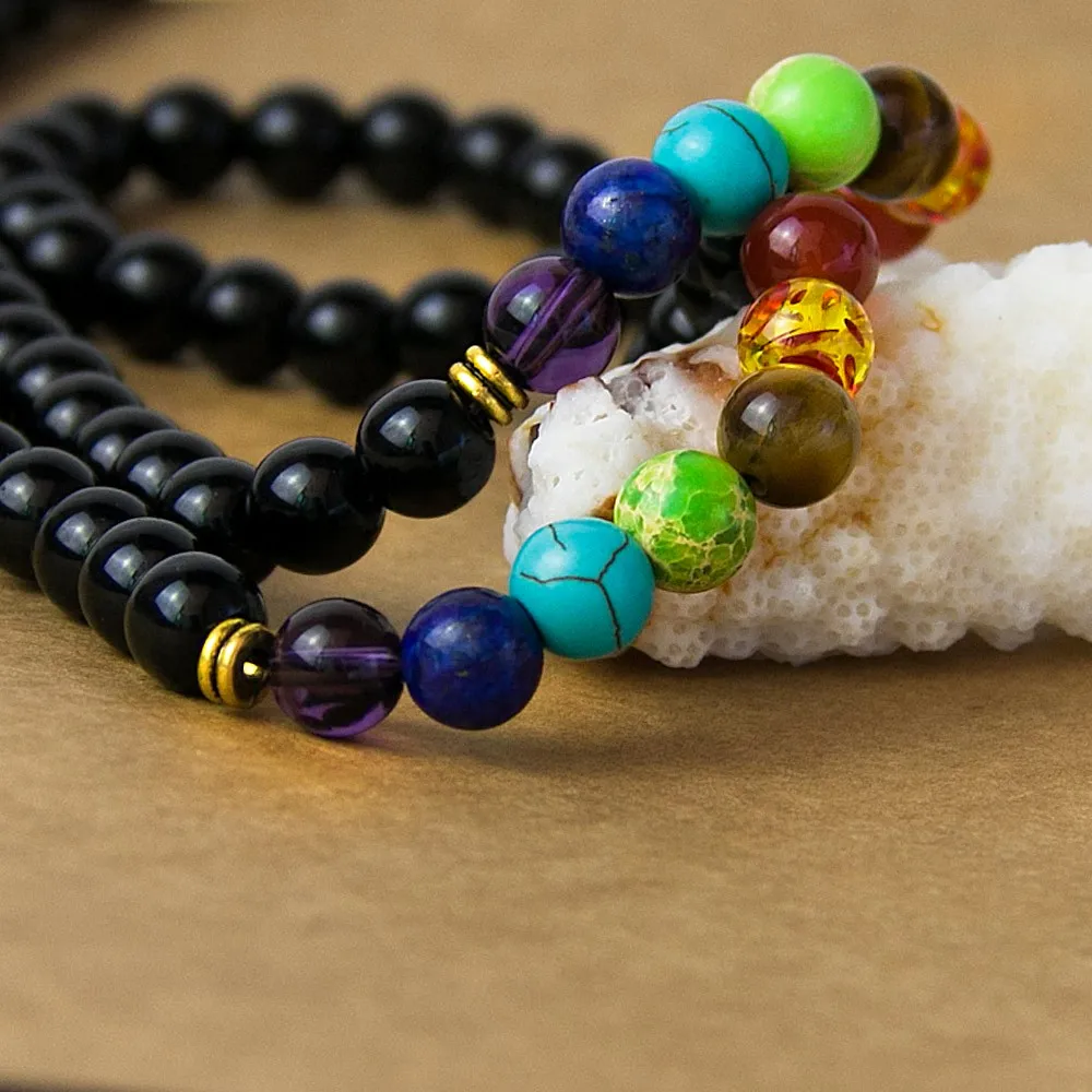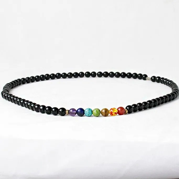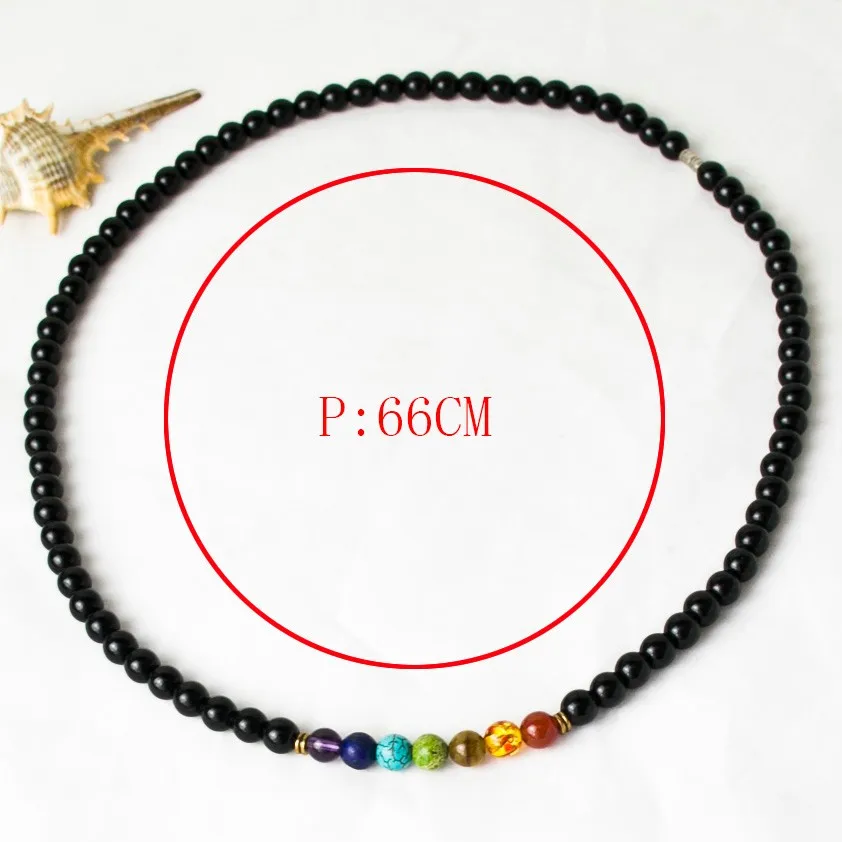 Black Onyx 8MMM Beads Necklace Women 7 Chakra Multicolor For Wisdom Natural Stone Yoga Meditation Necklace,Christmas Gifts