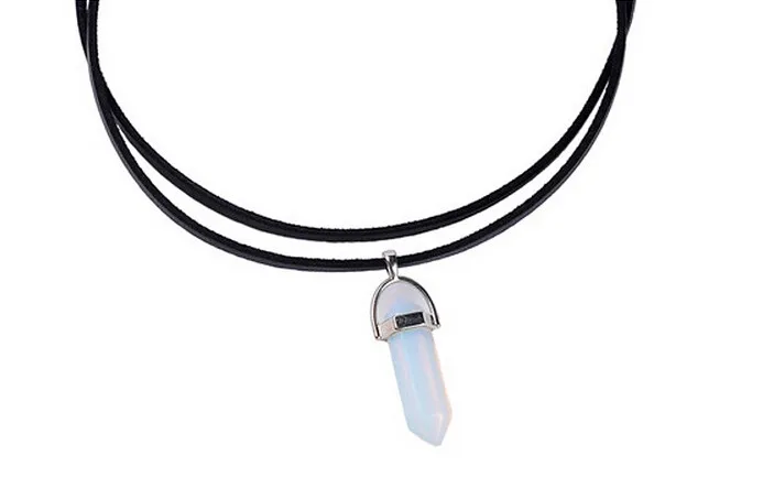 Boho Natural Stone Pendant Choker Necklace 2 Layers Leather Necklace For Unisex Fashion Jewelry Wholesale