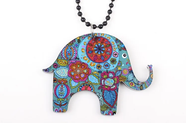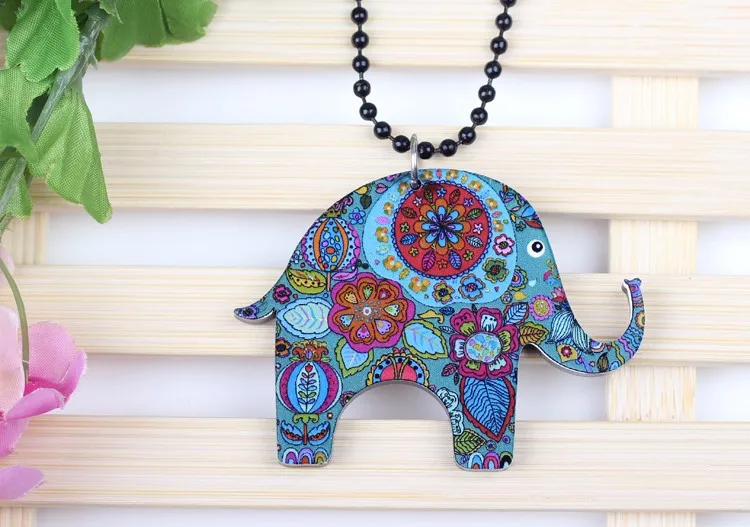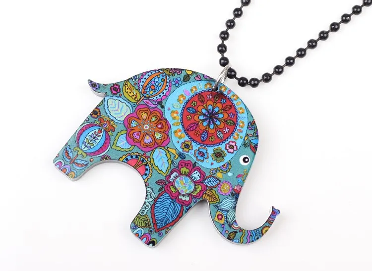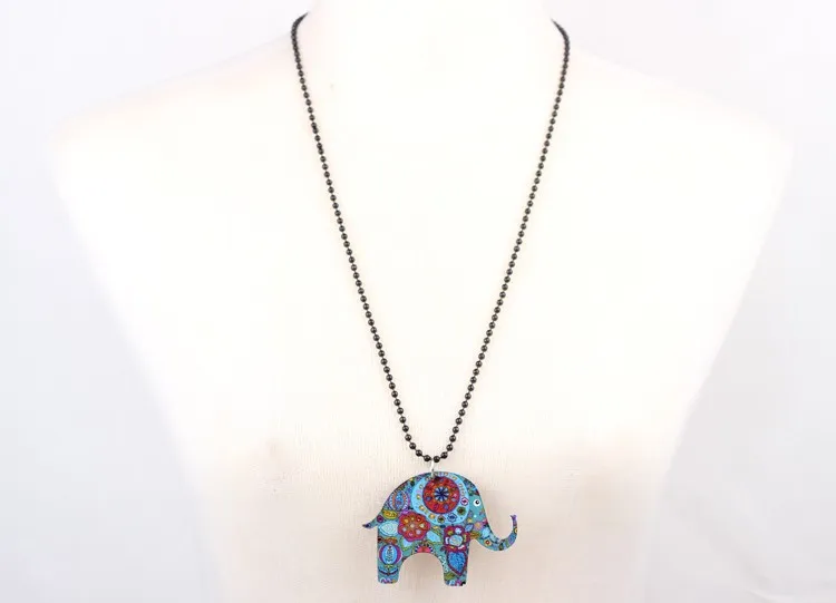 Bonsny Elephant Necklace Acrylic Long Chain Pendant 2016 news Accessories Animal Collar Colorful Design Girls Fashion Jewelry