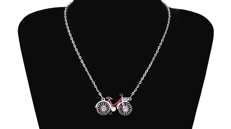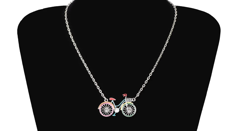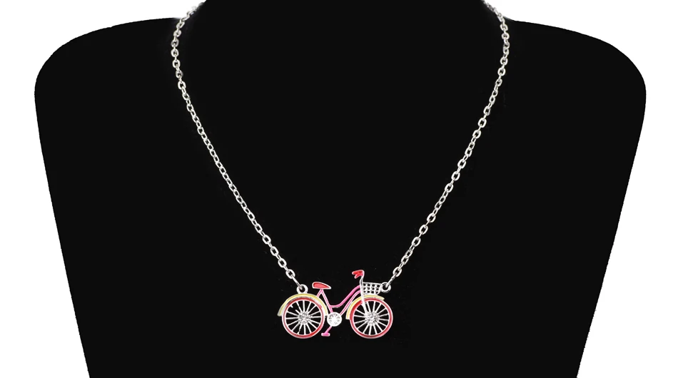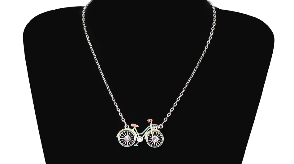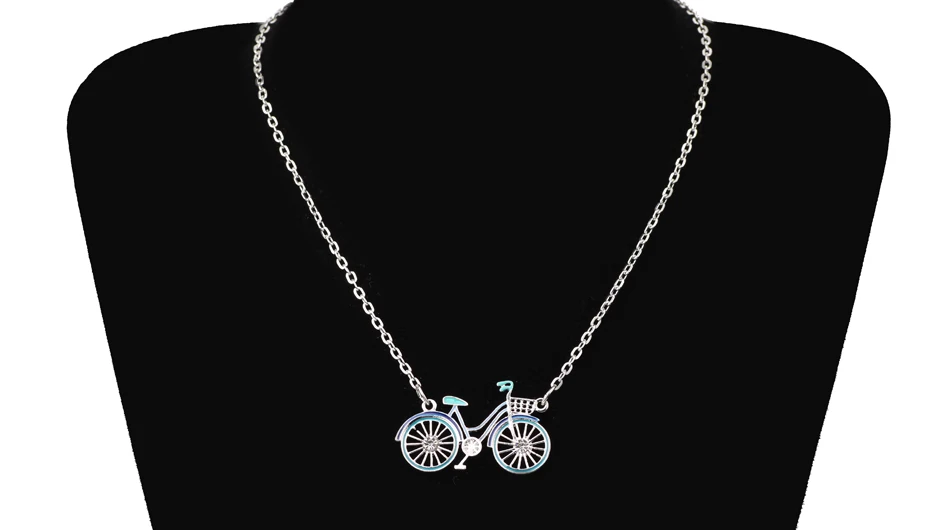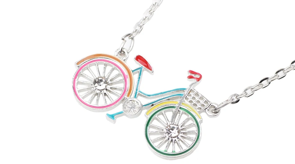 Bonsny Statement Alloy Bicycle Bike Shape Necklace Pendant Choker Collar Chain New Fashion Accessories Enamel Jewelry For Women