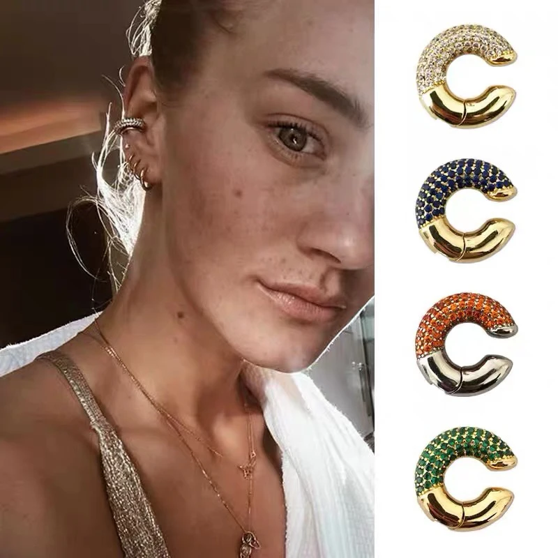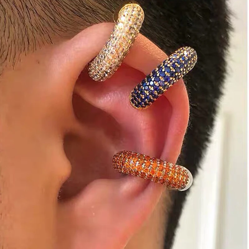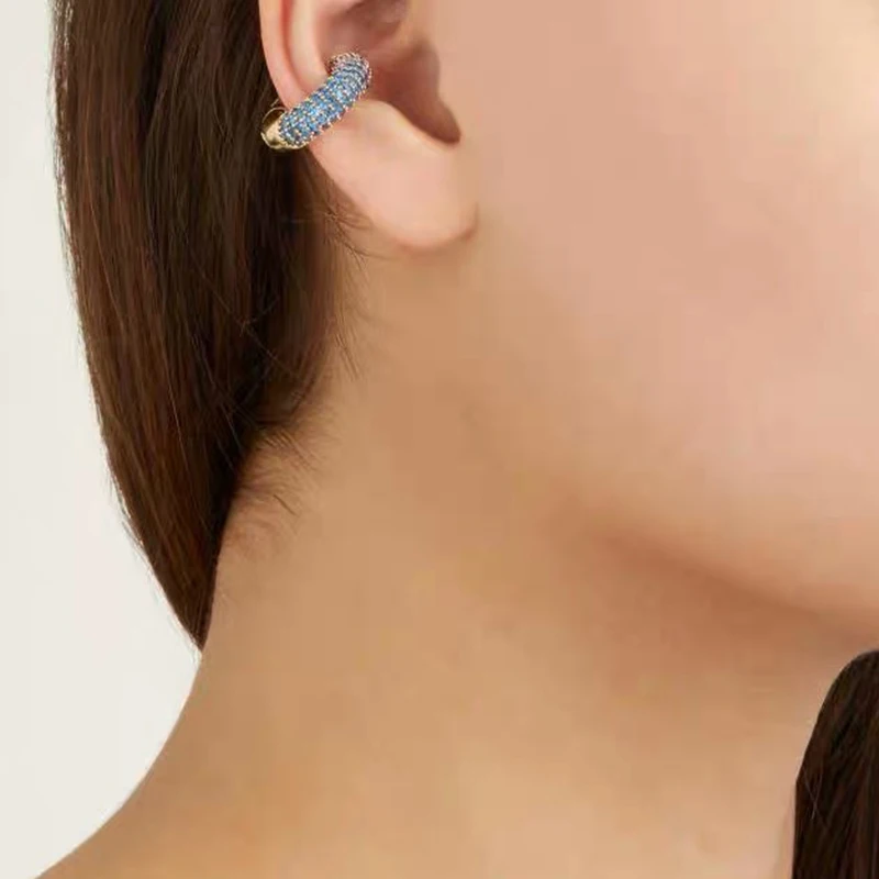 Brand Pure 925 Sterling Silver Jewelry For Women Full Crystal Earrings Cuff Earrings Hot Party Jewelry Clip Earrings One Piece