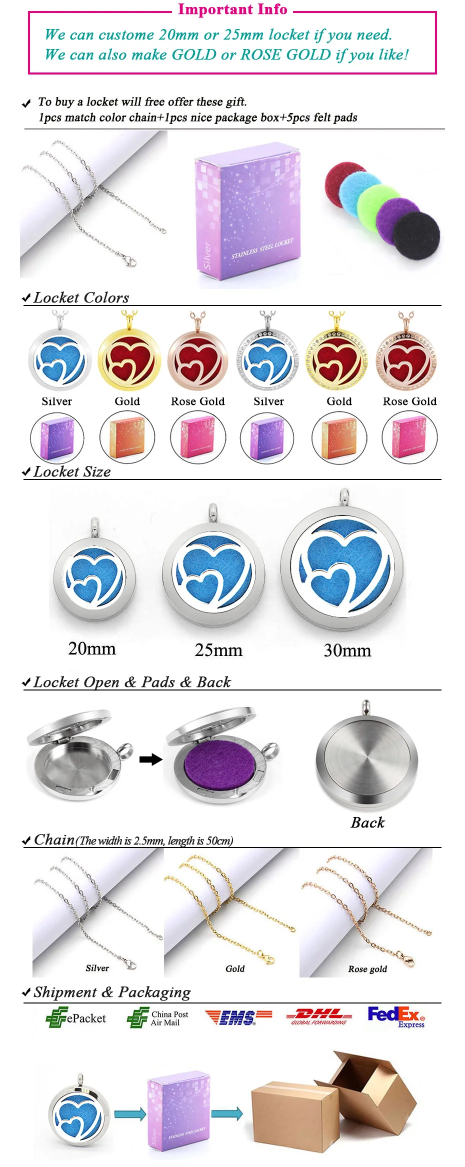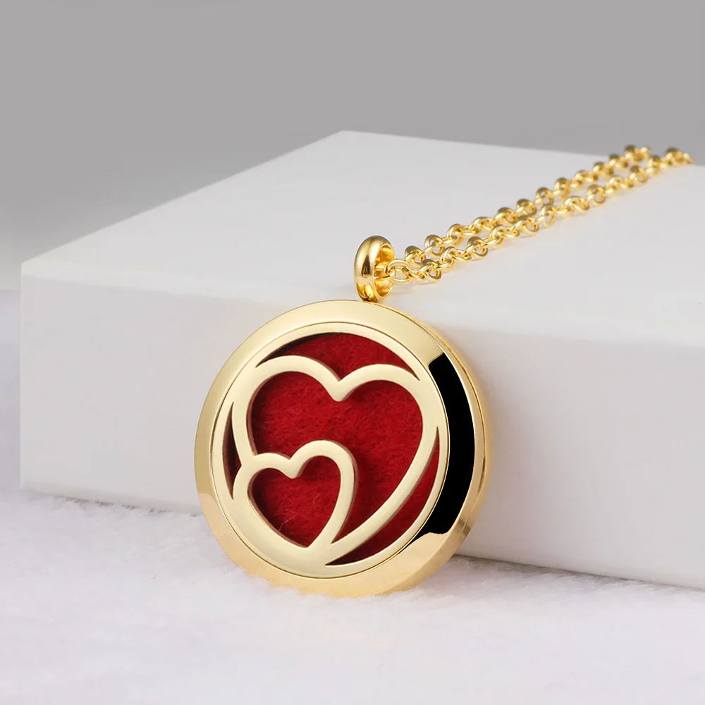 Carvort aromatherapy necklace essential oils diffuser magnetic locket 20mm 25mm 30mm 316L stainless steel gold fragrant pendant