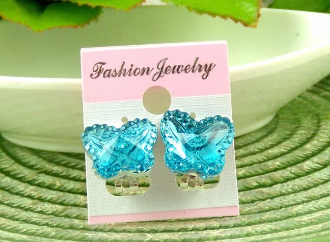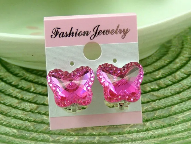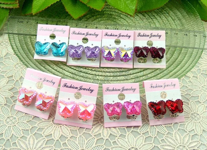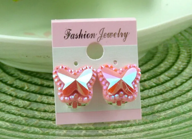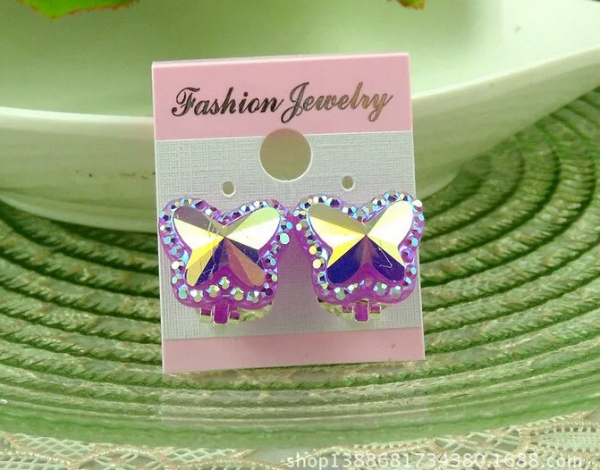 Colorful Crystal Butterfly Children without pierced ear clip earrings cute baby