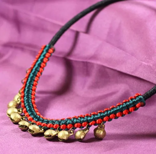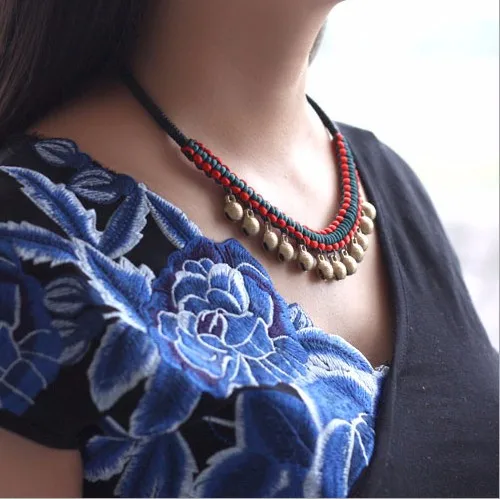 Copper bell tassel women choker necklace ethnic necklace vintage handmade knitted jewelry vintage necklace new arrival 2017 0513