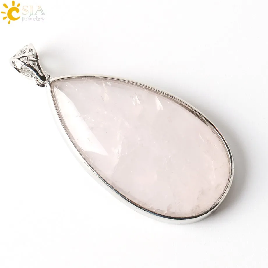 CSJA Natural Stone Water Drop Pendant for Necklace White Clear Crystal Healing Dangle Female Lover Elegant Jewellery Bijoux E243