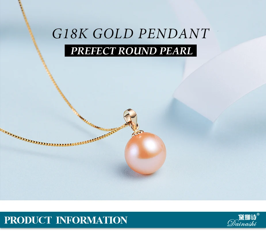 Dainashi 100% original 18K White/Gold real high quality round pearl pendants with chain top brand fine jewelry for women gifts