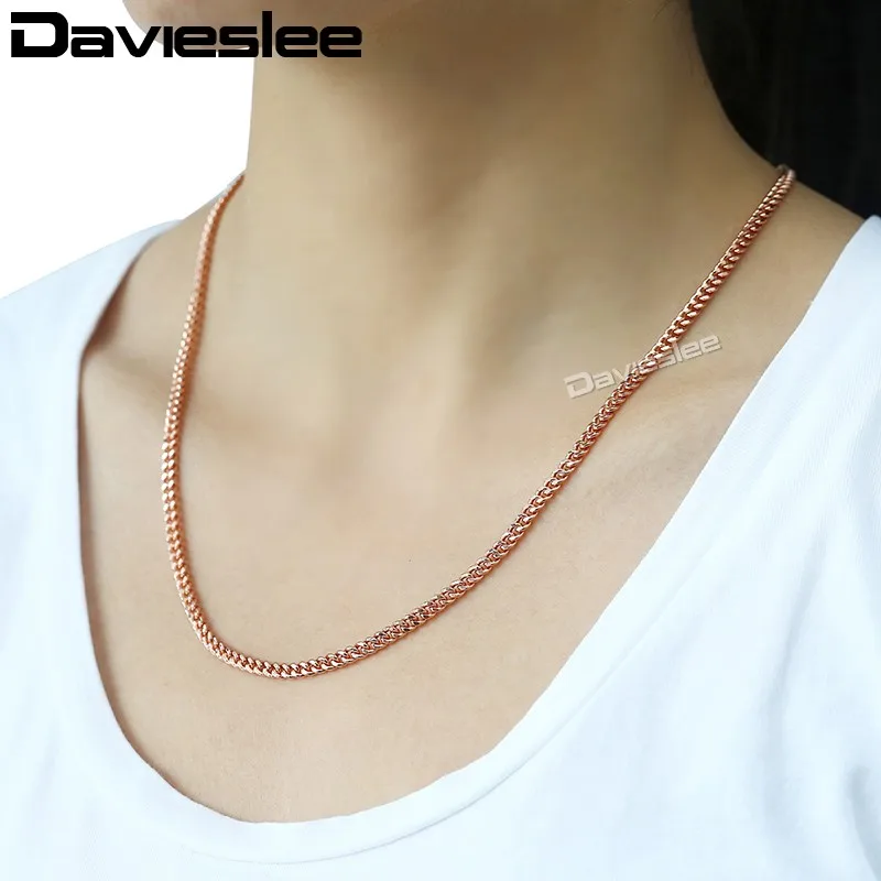 Davieslee 585 Rose Gold Filled Necklaces for Women Flat Cut Round Link Womens Necklace Chain Wholesale Jewelry Gift 3mm LGN220