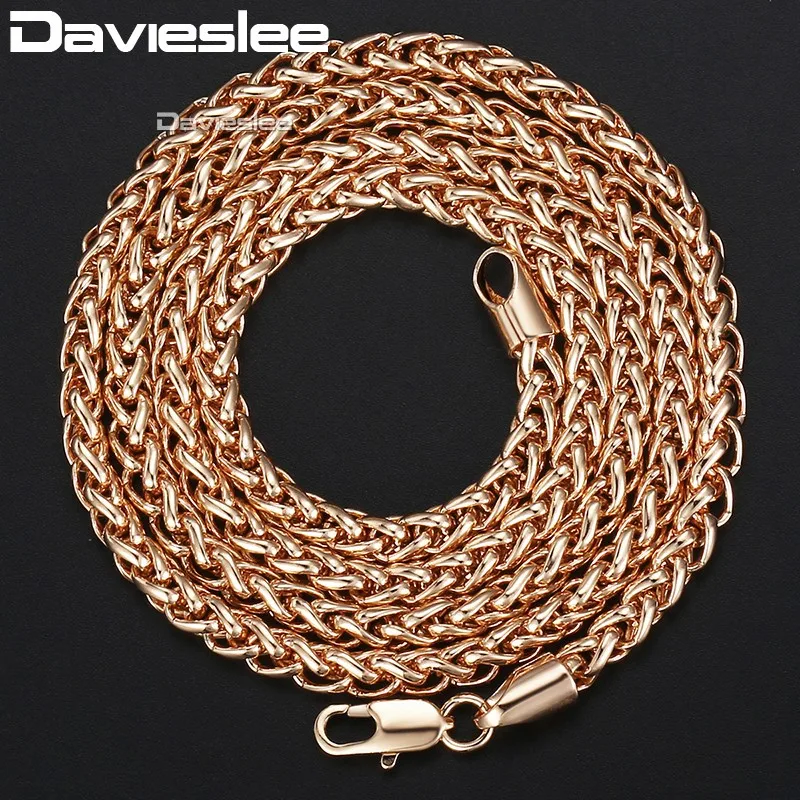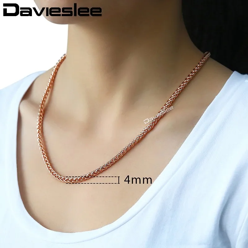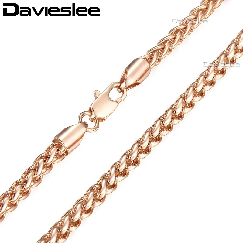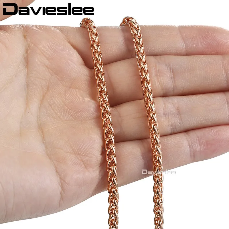 Davieslee Womens Necklace Chain 585 Rose Gold Filled Wheat Spiga Necklaces for Women Men Jewelry Wholesale 4mm 45-91cm LGN255