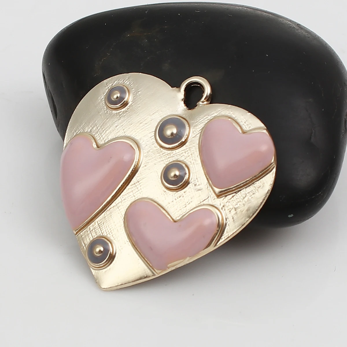 DoreenBeads Zinc Based Alloy Charms Heart Light Golden Blue Enamel 29mm(1 1/8") x 28mm(1 1/8"), 2 PCs