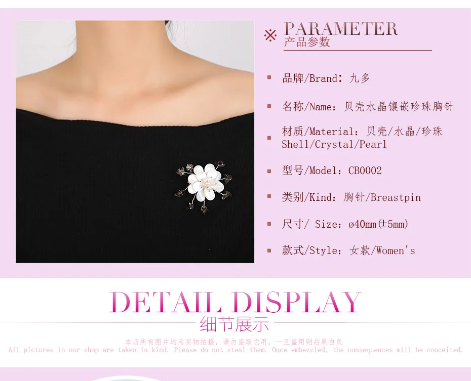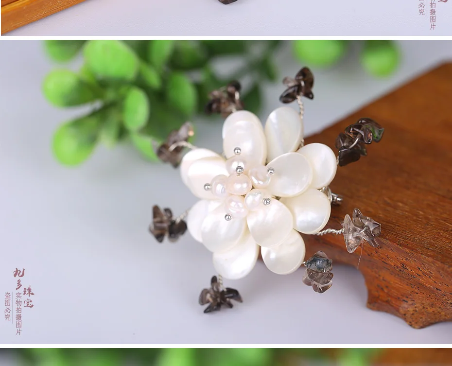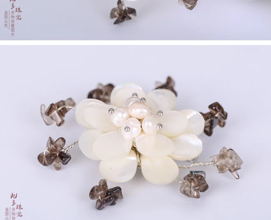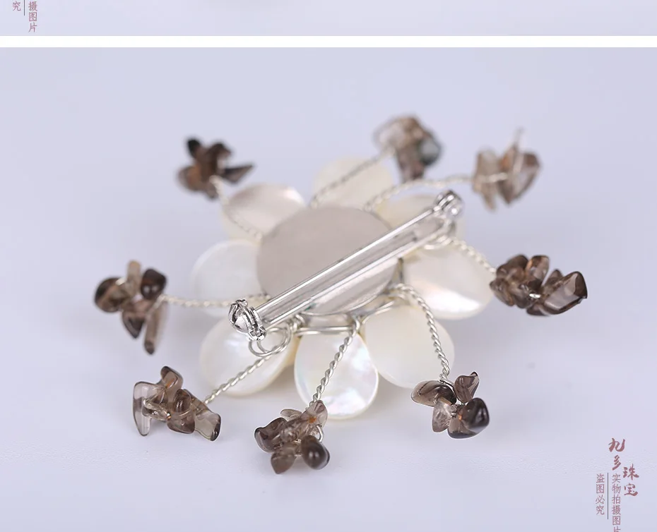 Double layer White flower brooch women's brooch with free shipping Natural pearl shell jewelry JIUDUO jewelry Genuine luxury