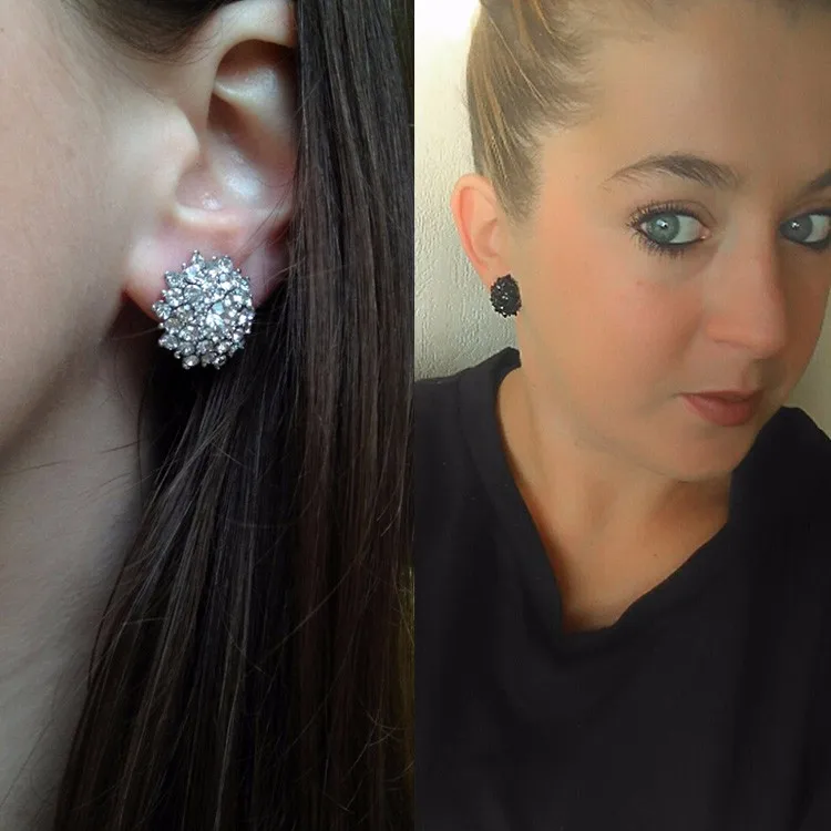OCESRIO Luxury Big Crystal Clip Earrings for Women Round Paved Crystal Silver Ear Clip on Earrings no Hole Wedding Kids ers-h14