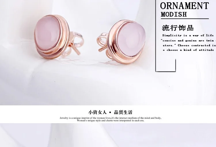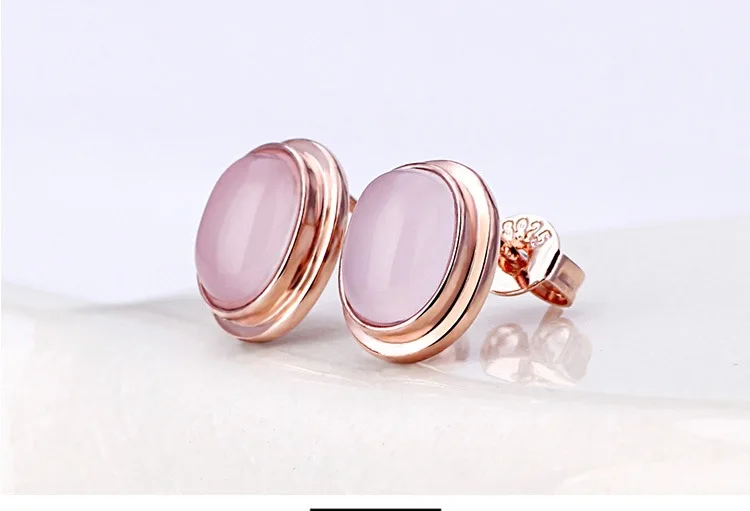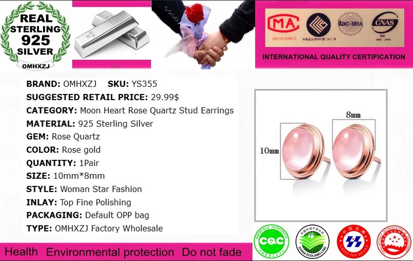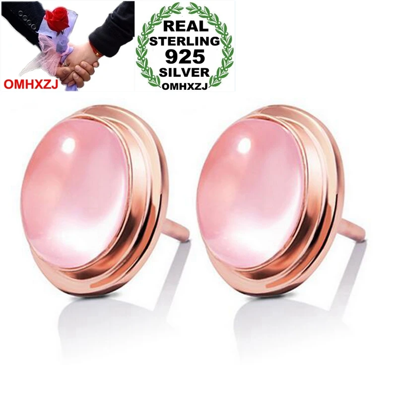 OMHXZJ Wholesale Sweet Fashion OL Woman Girl Wedding Gift Pink Moon Heart Rose Quartz 925 Sterling Silver Stud Earrings YS355