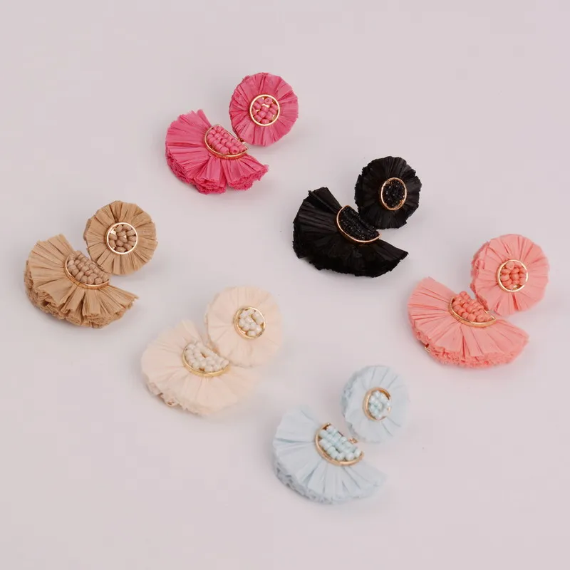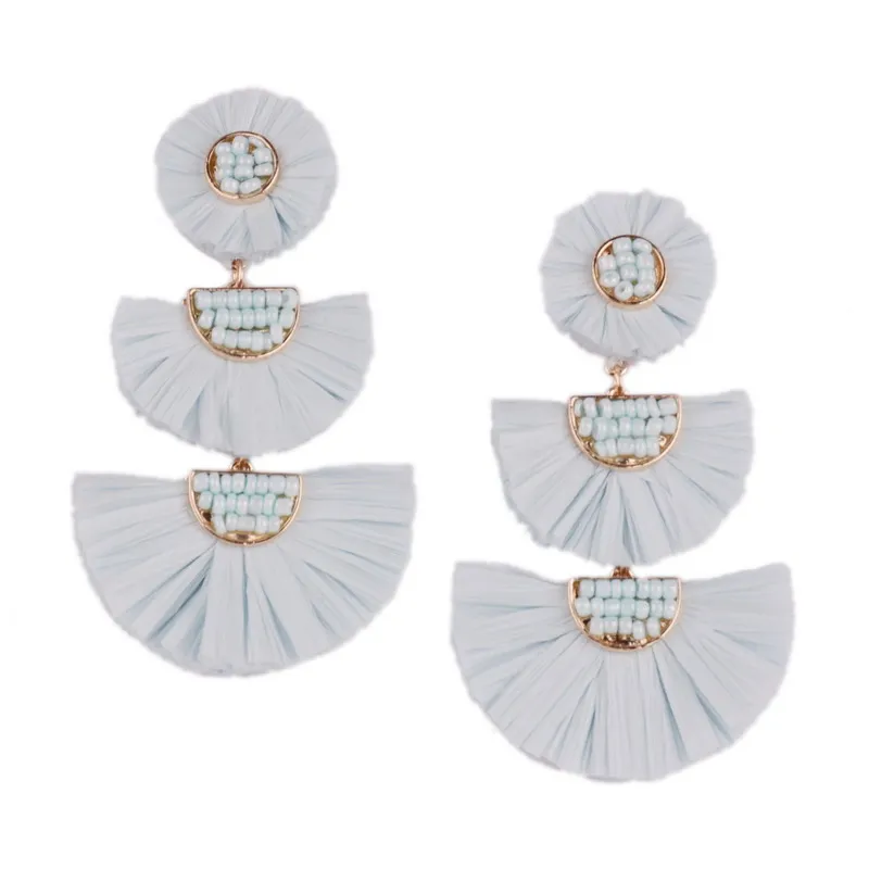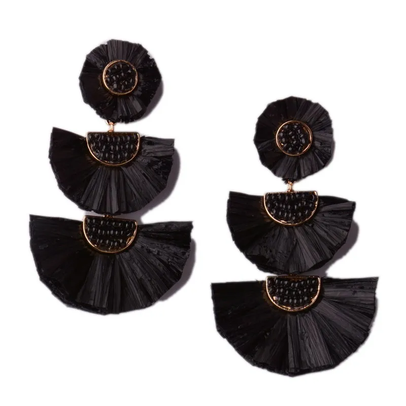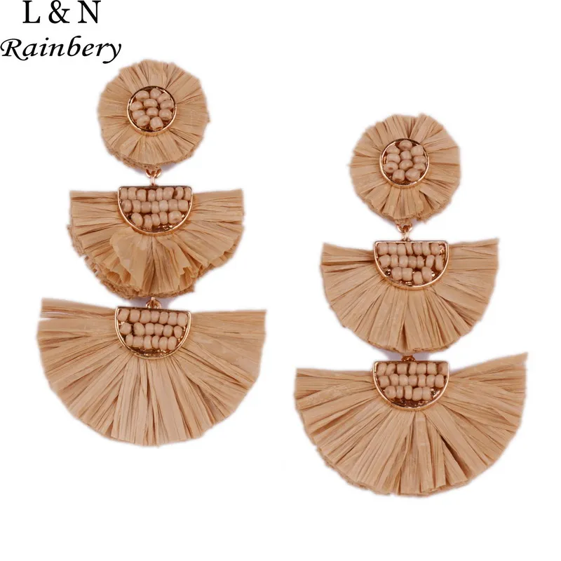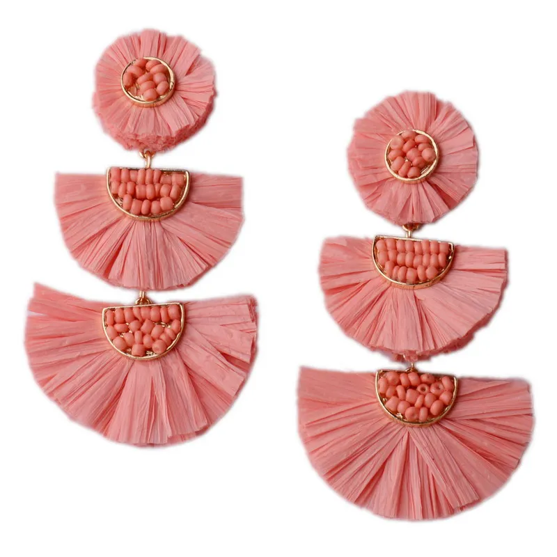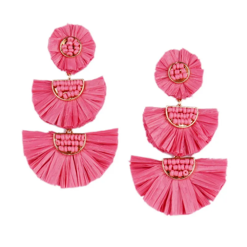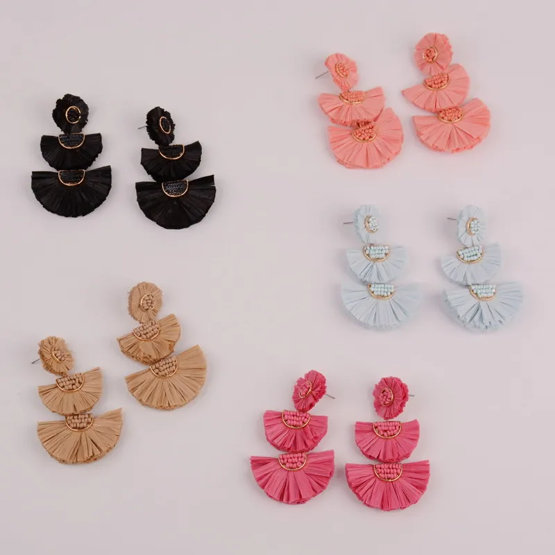 Rainbery 2019 New Girl Raffia Earrings Tassel Earrings Light Weight Fashion Colorful Jewelry Tiered Dangle Statement Earrings