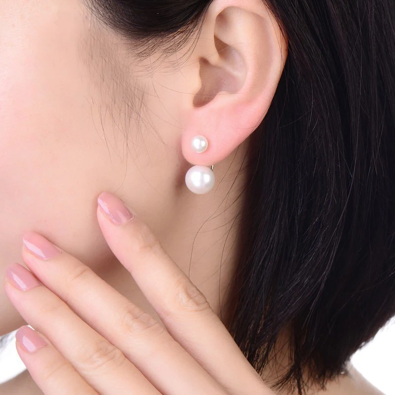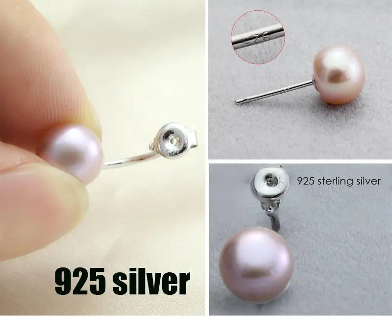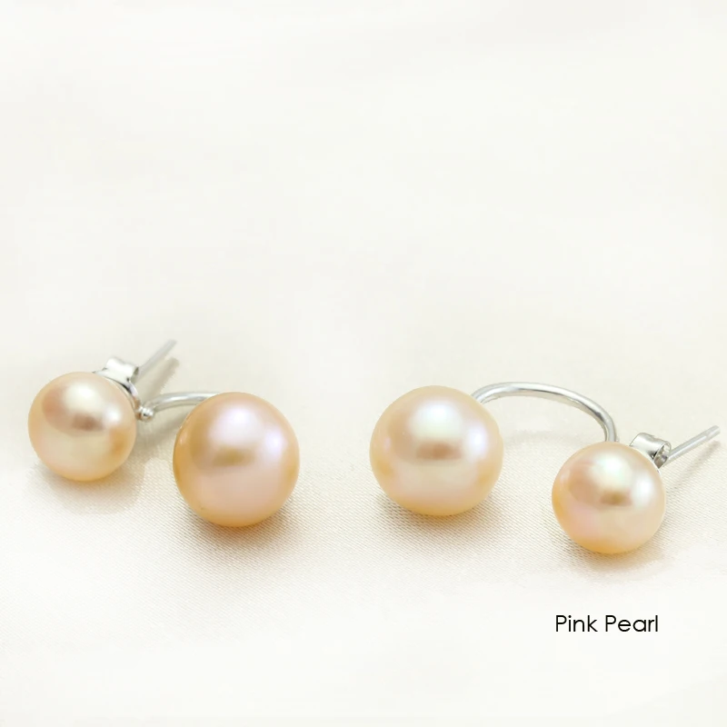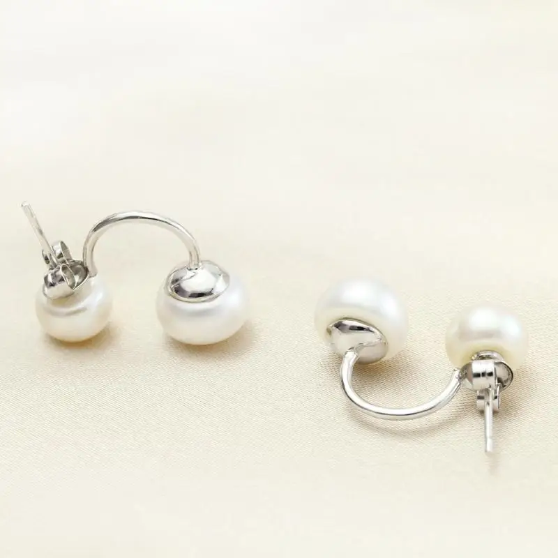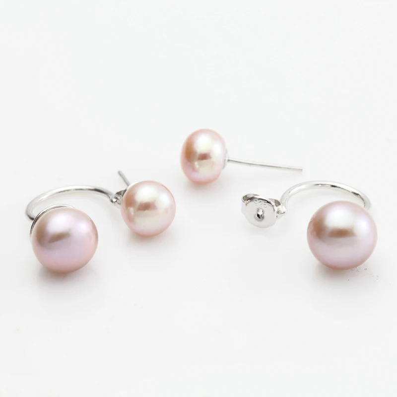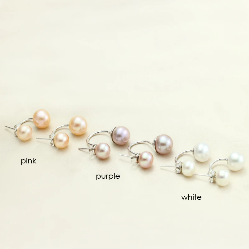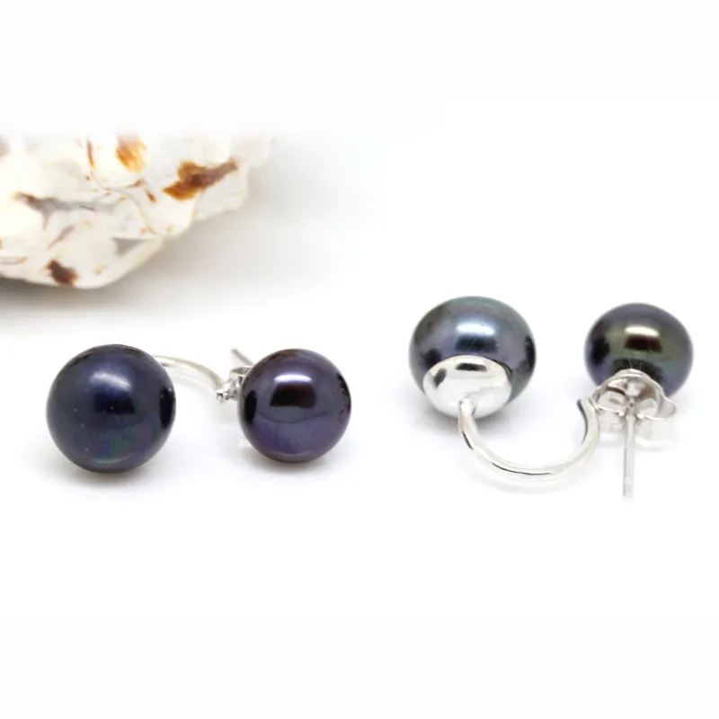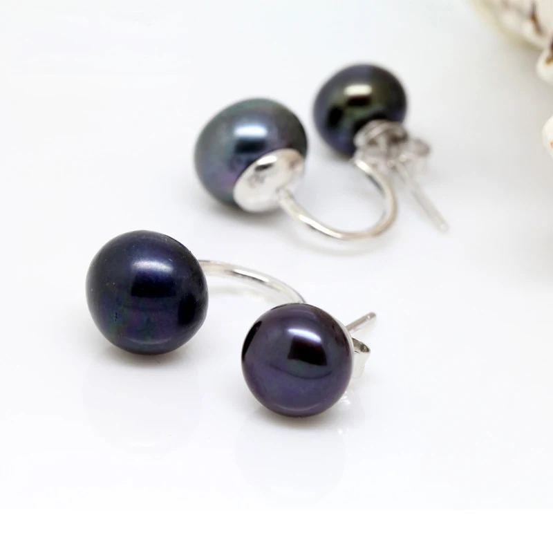 Real Natural Double Pearl Earrings 925 Sterling Silver Earrings Jewelry,Black Freshwater Pearl Earrings Wedding Girl Best Gift