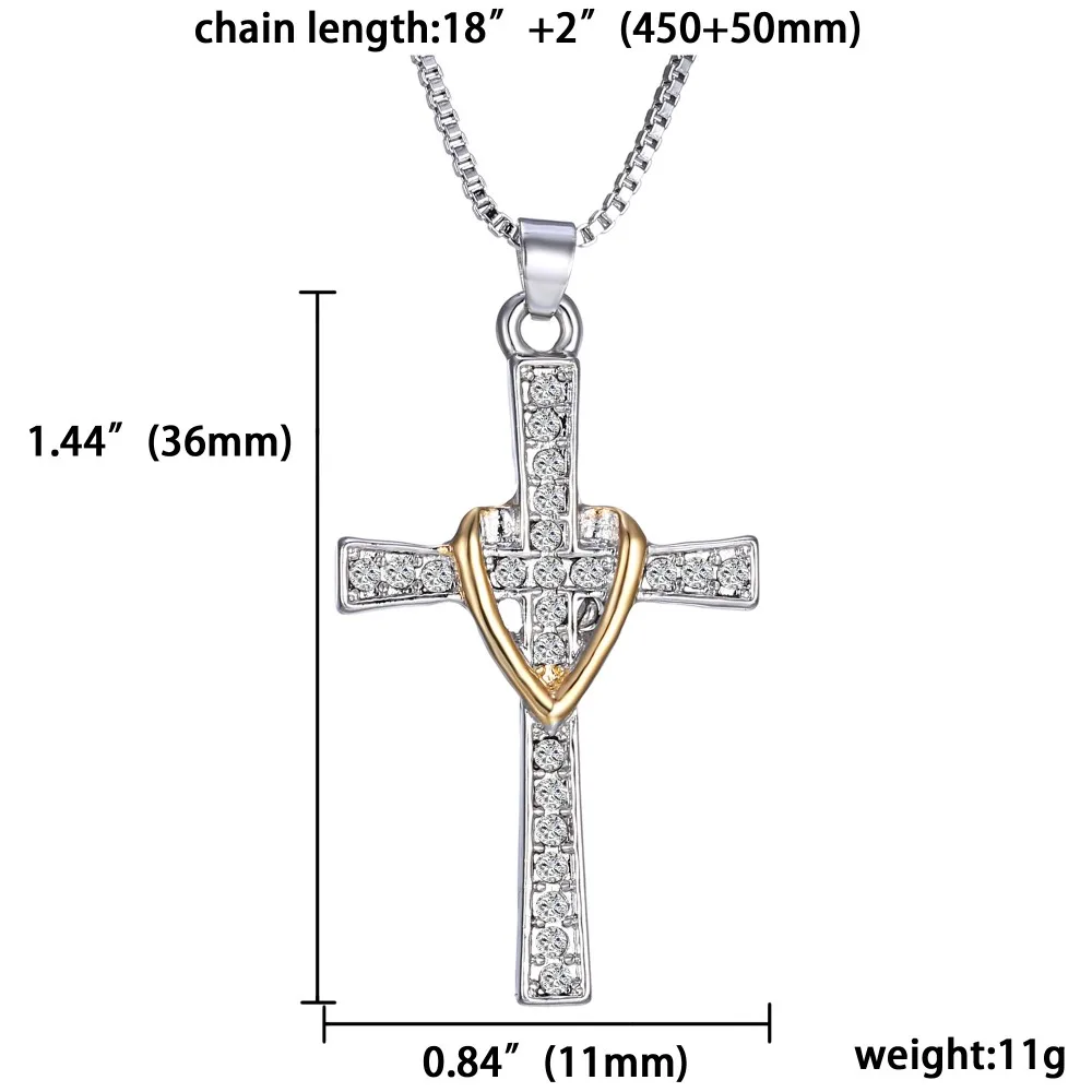 Rhinestone Jewelry Cross Pendant Necklace Heart Fashion Christian Jewelry Ronmantic Gift