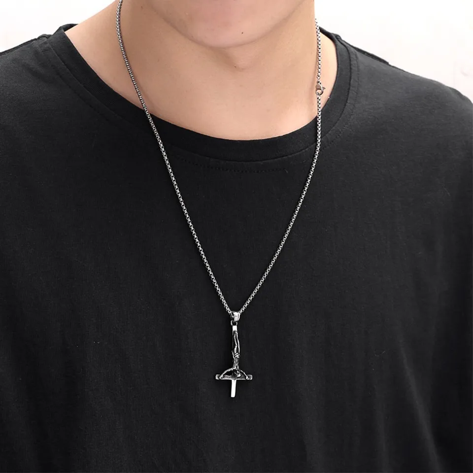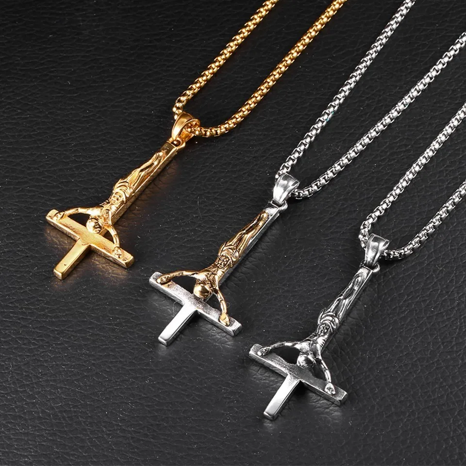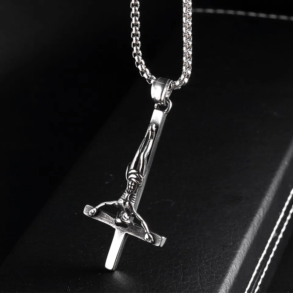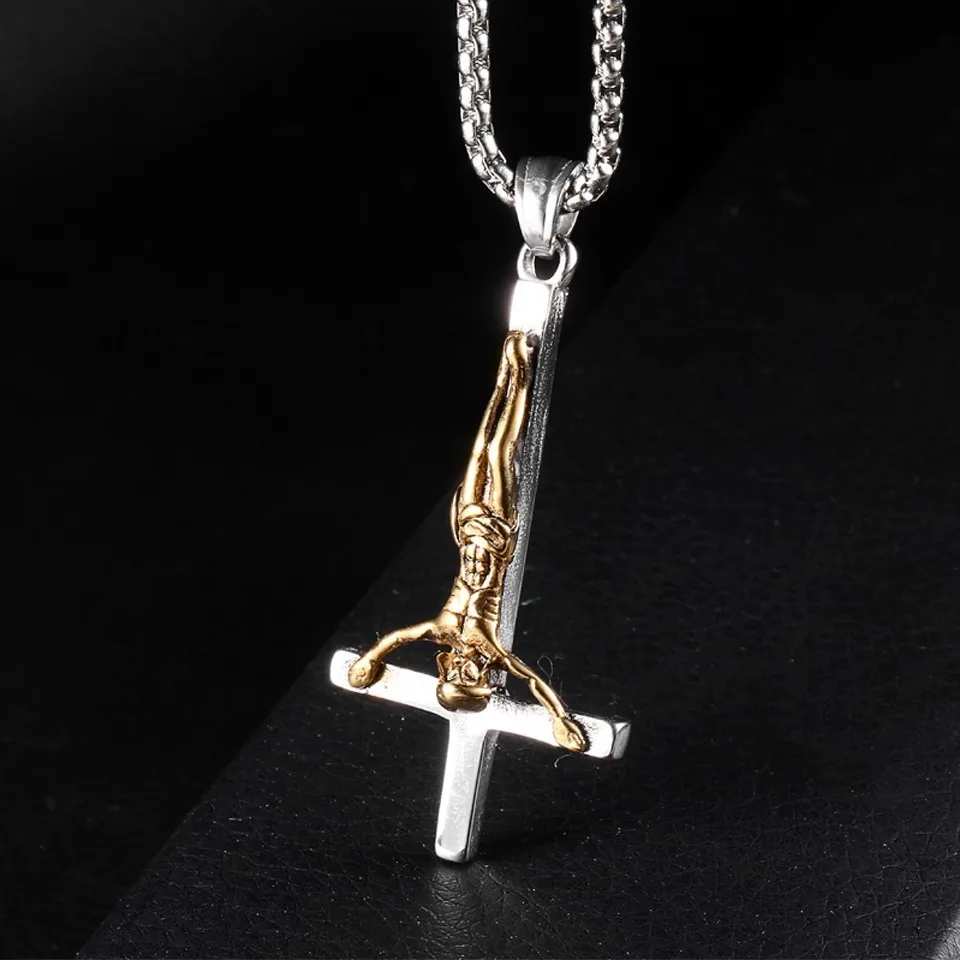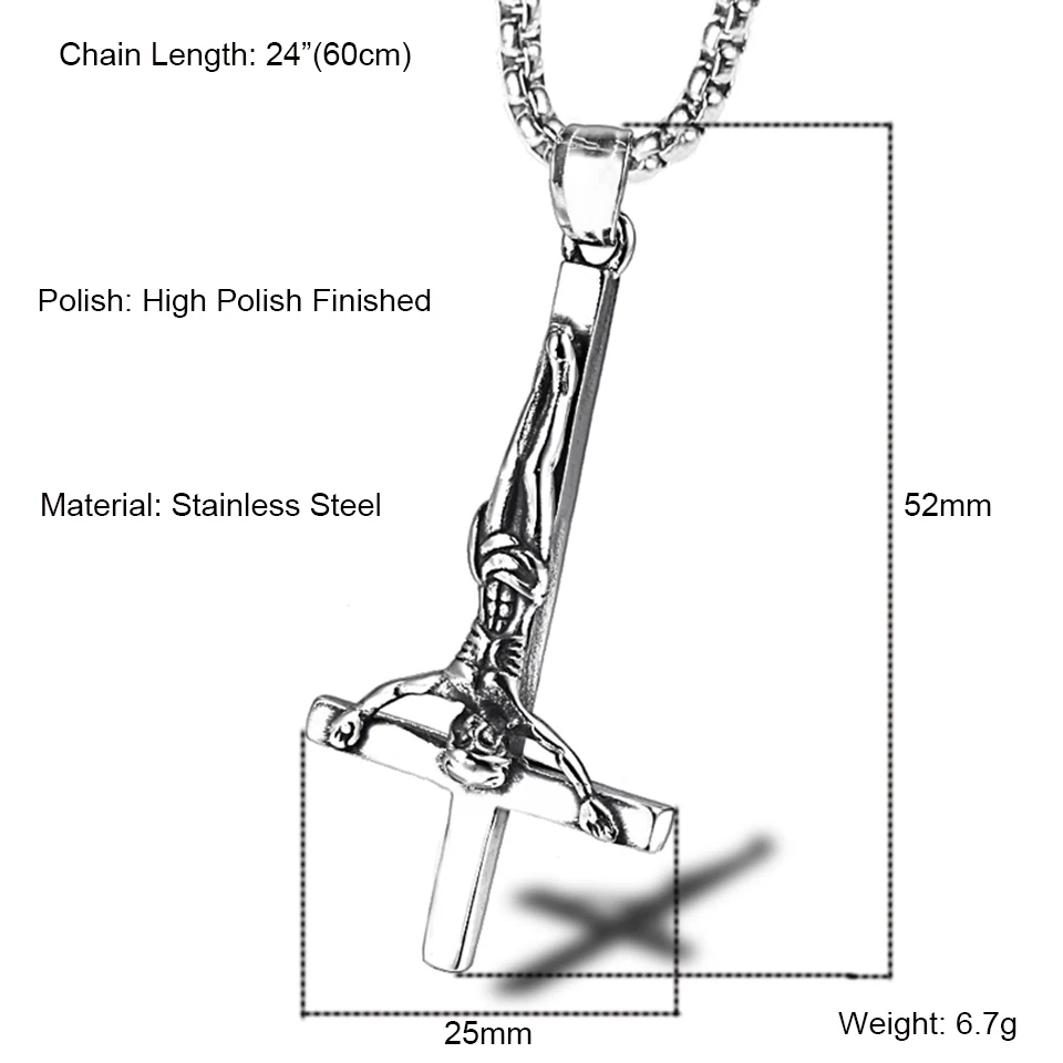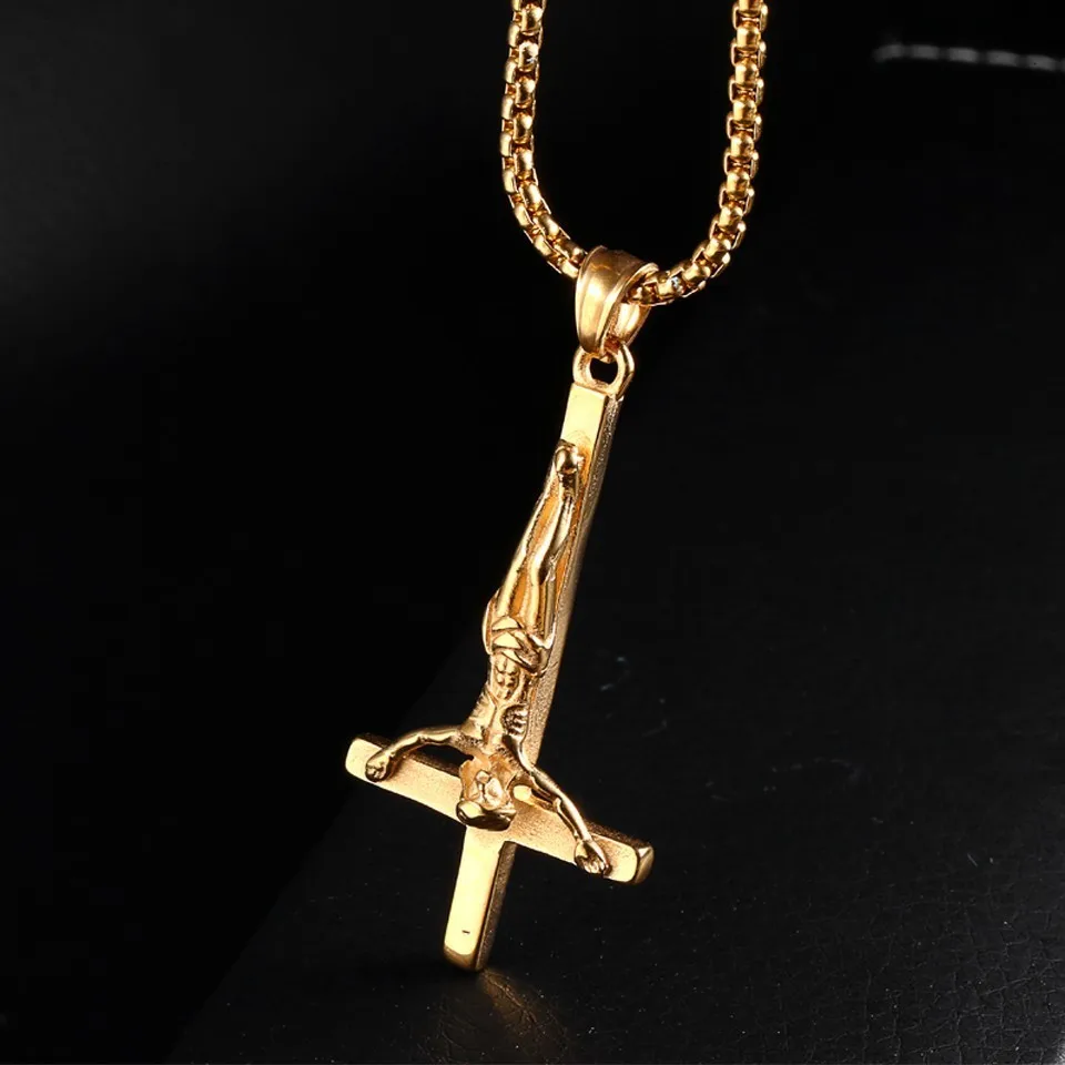 RIR Fashion Inverted Cross Jesus Necklace Gold Stainless Steel Upside Down Inverted Satan Cross Pendant Gothic Satanic Jewelry