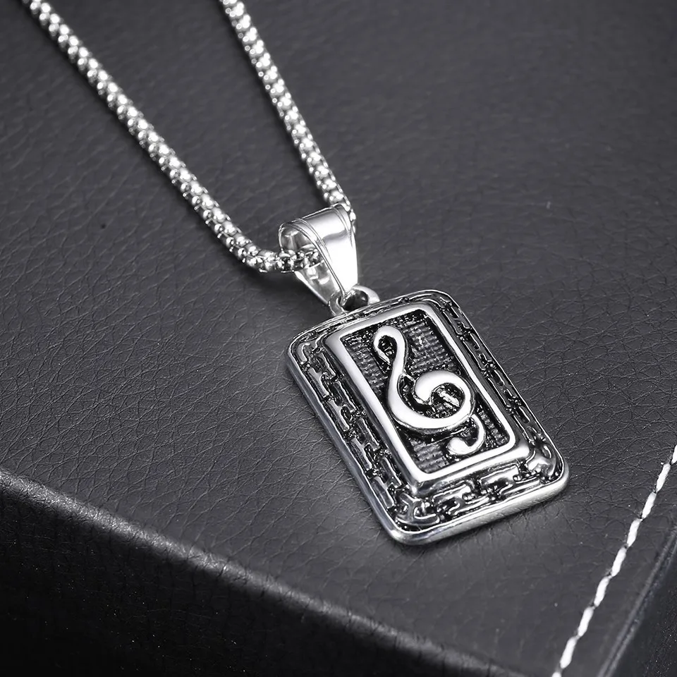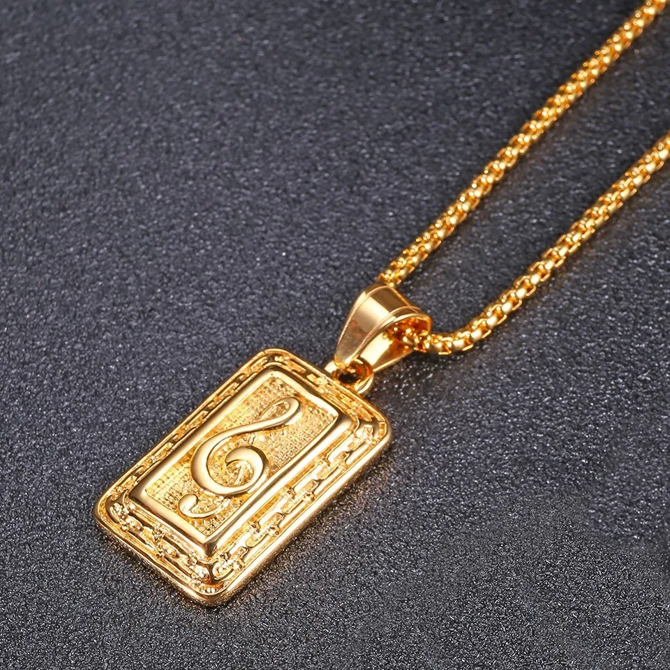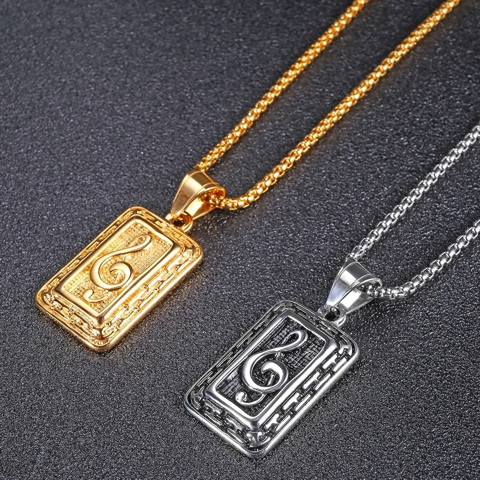 RIR Treble Clef Music Note Necklace Pendant Silver Gold Stainless Steel Music Teacher Lover Gift For Musician Music Note Jewelry