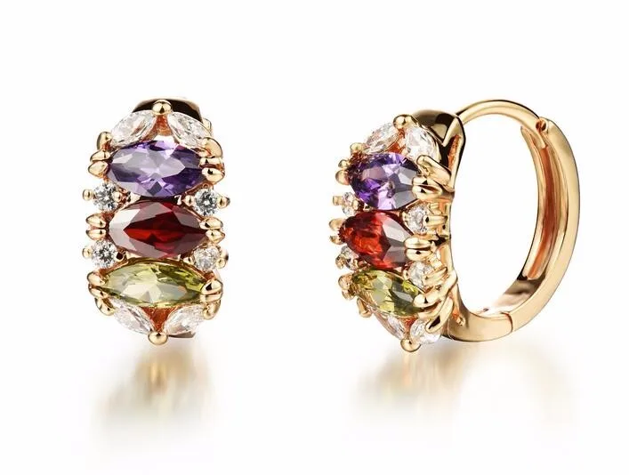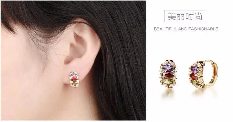 Romantic Multicolor Cubic Zirconia Women Clip Earring Fashion Stainless Steel Classical Earrings 661