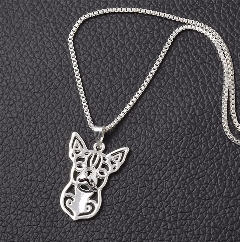 RONGQING 10pcs/lot Small Dog Breed Chihuahua Charm Necklace Hollow Dog Statement Choker Necklace for Women XL-005