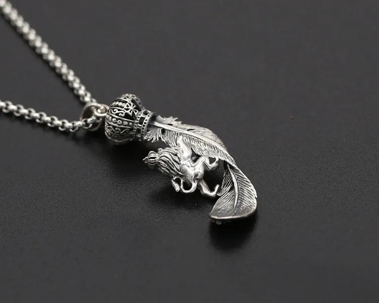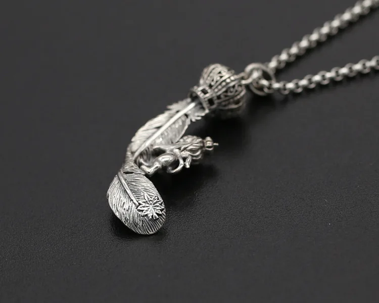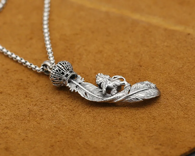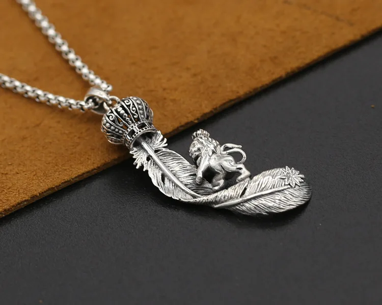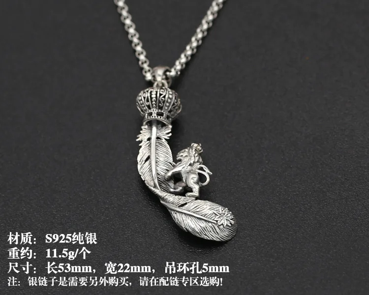 S925 Sterling Silver Takahashi Goro Jewelry Retro Thai Silver Men And Women Hand-crown Lion Eagle Feather Pendant
