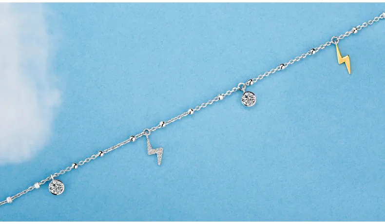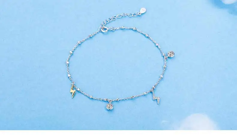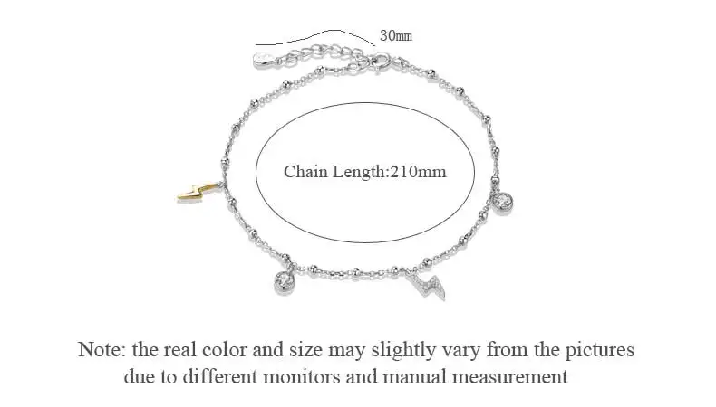 SA SILVERAGE Real Sterling Silver 925 Jewelry City Sky Lightning Anklets 2018 Trendy Chains Anklets for Women Cubic Zirconia