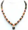 SALE 6-7mm Pink Round natural Coral & 8mm Yellow tiger's-eye 17'' Necklace with 12mm tiger's-eye pendant -nec6046