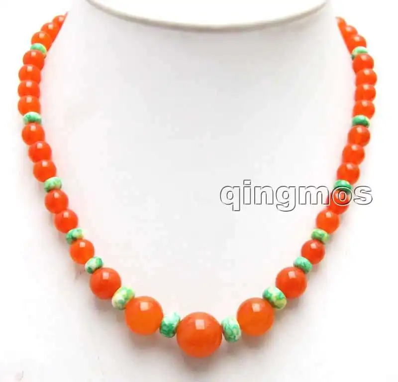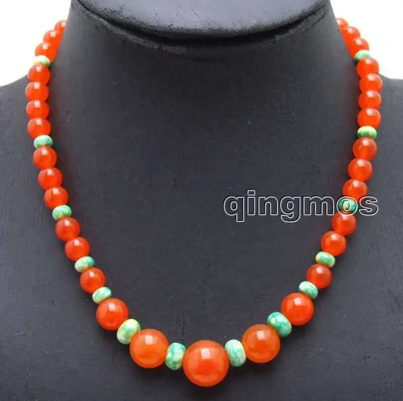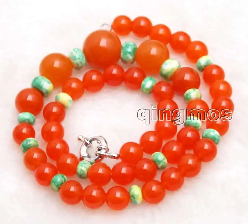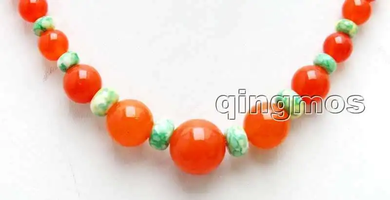 SALE 8-14mm Round China red Natural jade and 4*6mm Green Rondelle Agate 17" necklace-nec6037