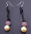 SALE Big 10-11mm pink Potato Natural Freshwater Pearl with Purple Lava rock Necklace 18" with Genuine Leather-5909