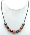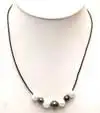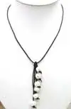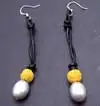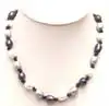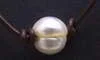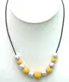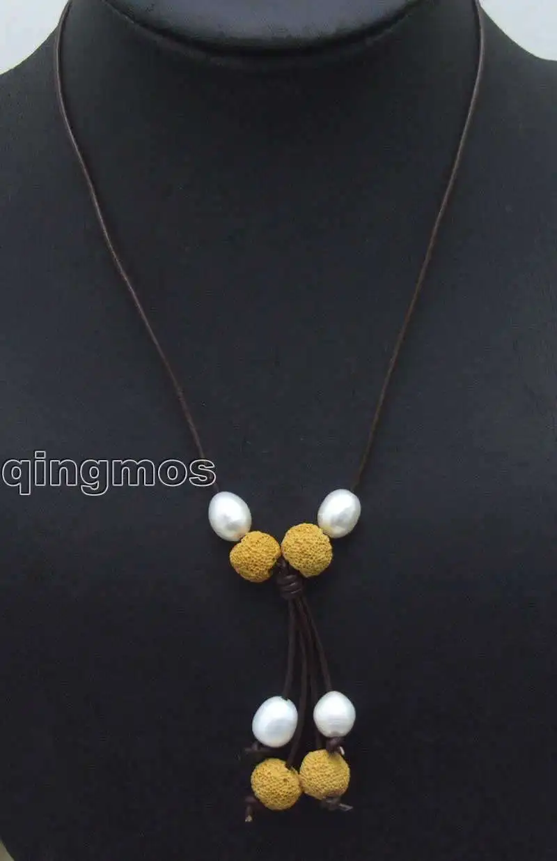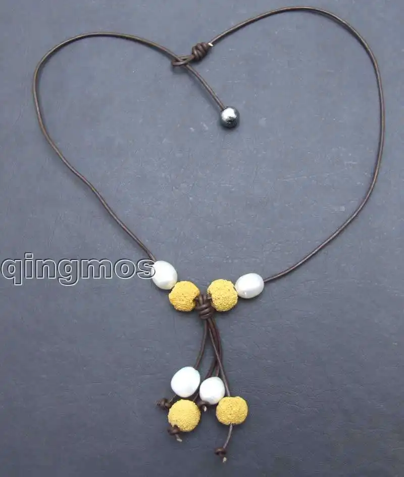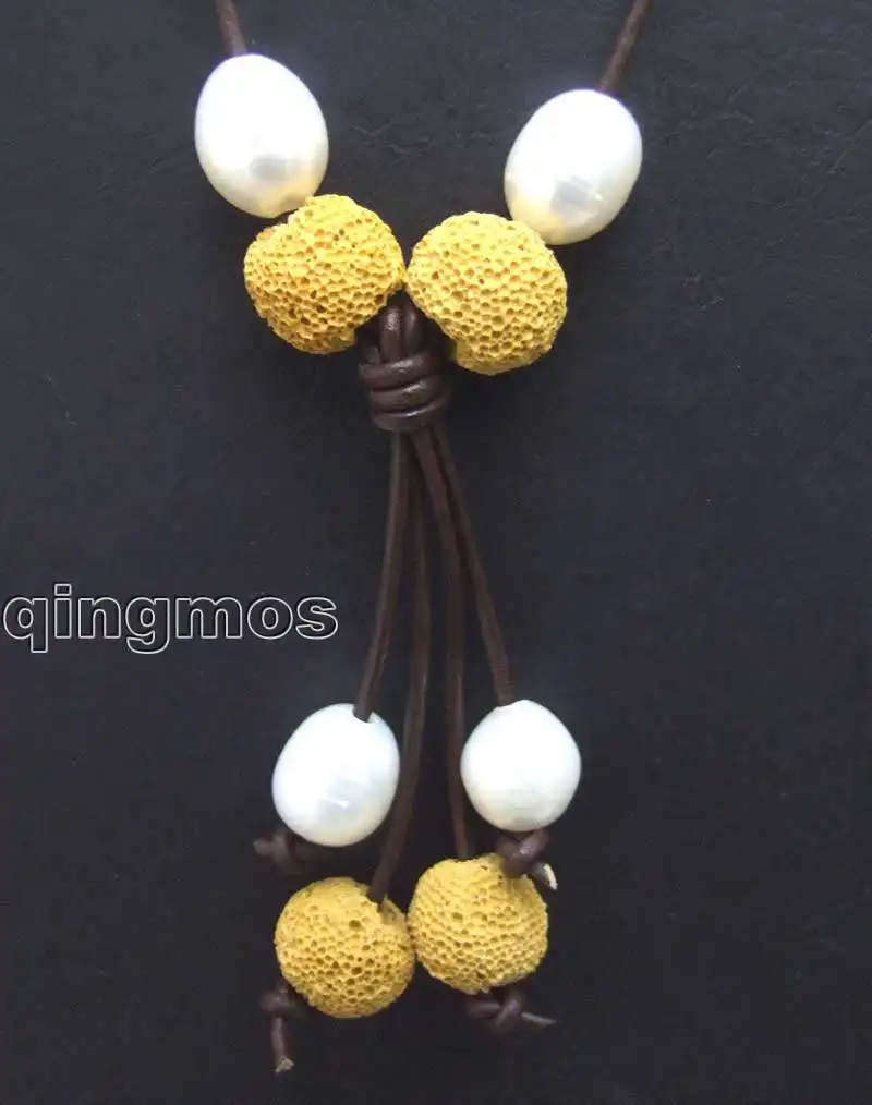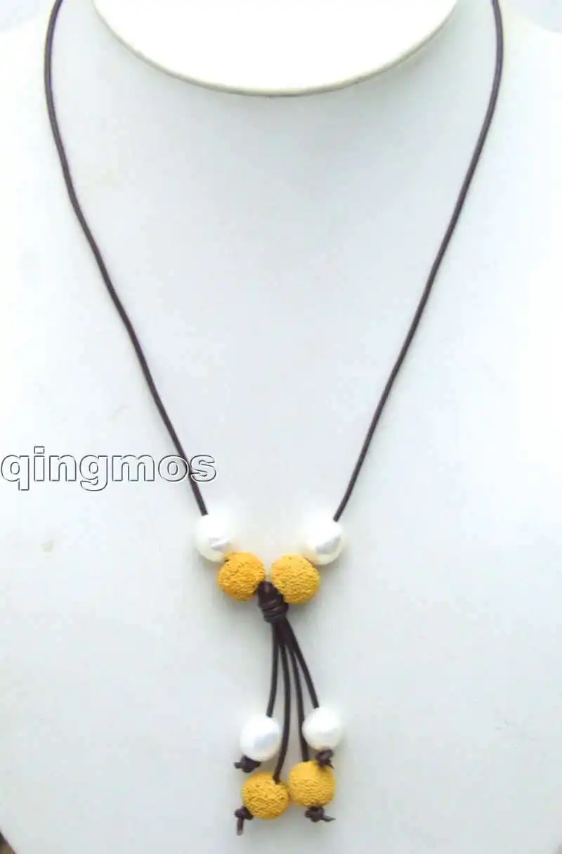 SALE Big 10-11mm White Rice Natural Freshwater Pearl with yellow lava beads 18" Genuine Leather Necklace-5913
