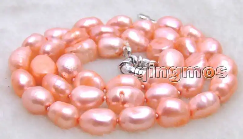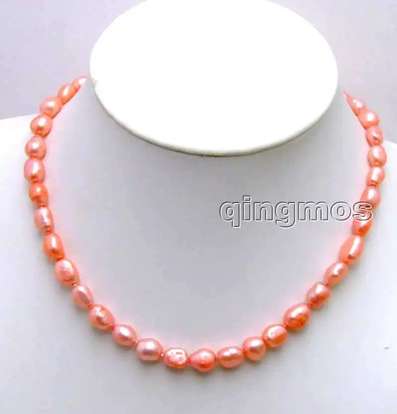 SALE Big 7-9mm Bright Pink BAROQUE Natural Freshwater PEARL 17" Necklace -5842