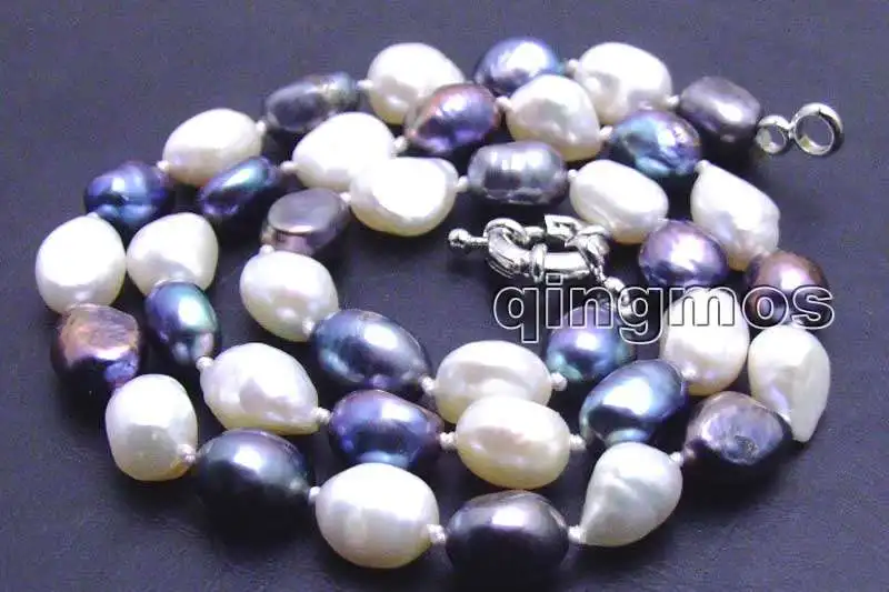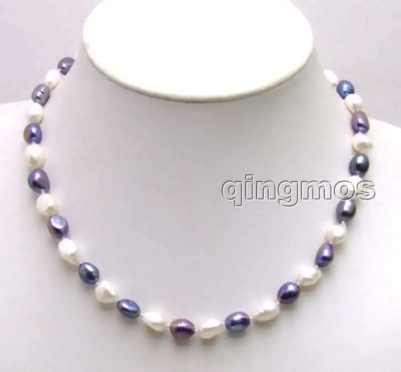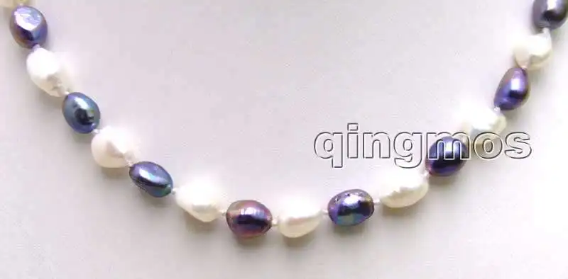 SALE Big 7-9mm White and black BAROQUE Natural Freshwater PEARL 17" Necklace -5852