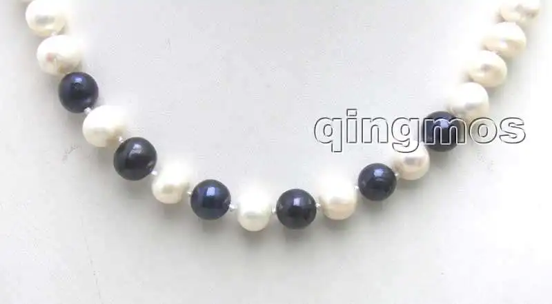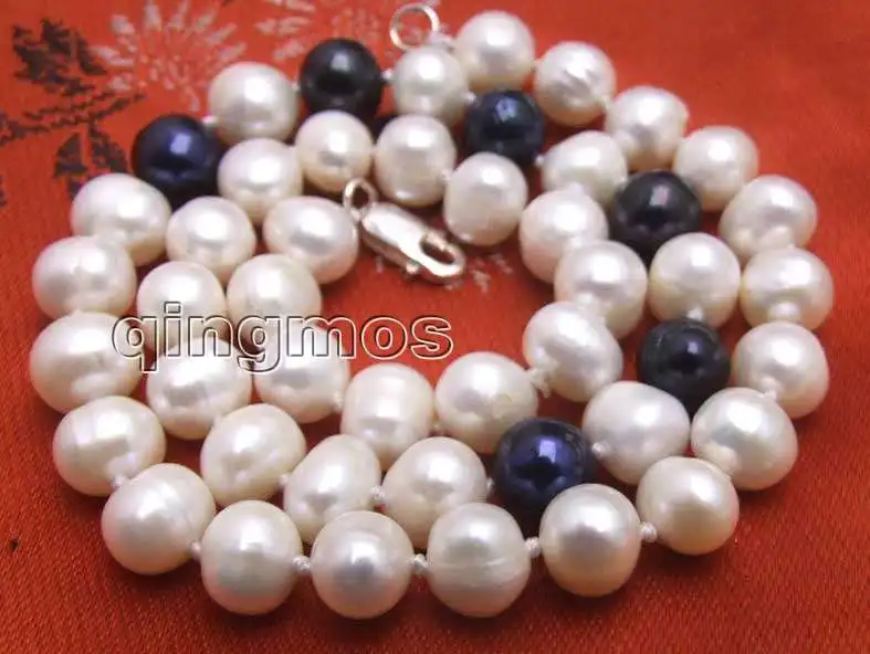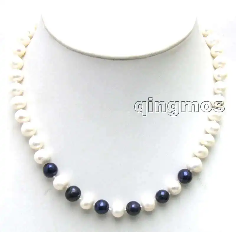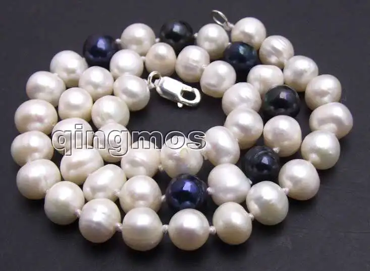 SALE 8-9mm White Natural Freshwater Pearl with 6 pieces Black PEARL 17" Necklace -5902