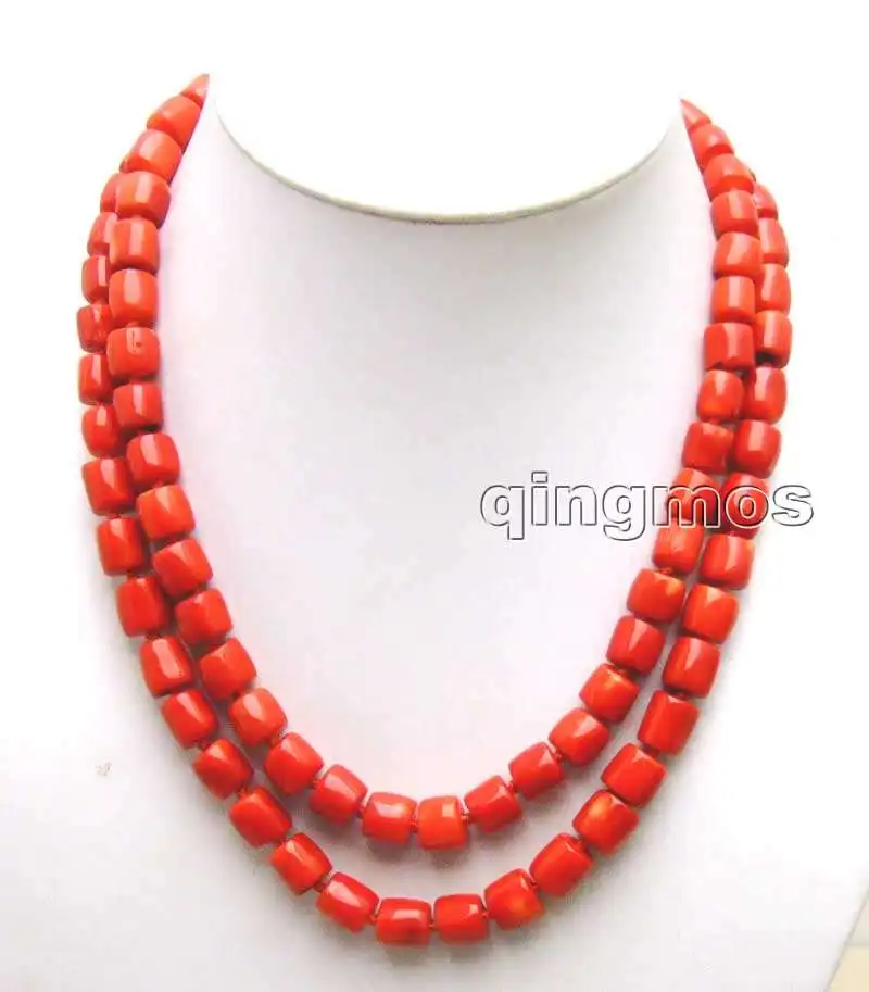 SALE GENUINE Big 10-11mm Thick Slice NATURAL Red Coral long 2 Strands 18-19" Necklace-5846