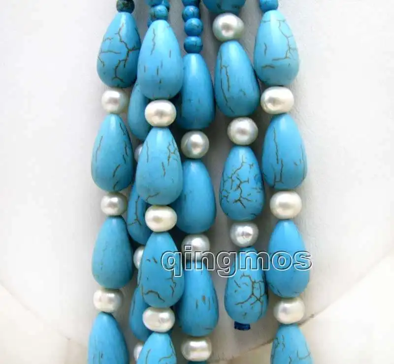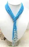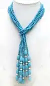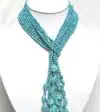 Look at this noblest 3 Strands turquoise necklace. This necklace look very noblest.This necklce length indeed is 114CM(45")and no clasp,So you can tie this neckalce as your inimitable style.If you like, you can do a different style for yourself.You will became so noblest and so larruping noblest.