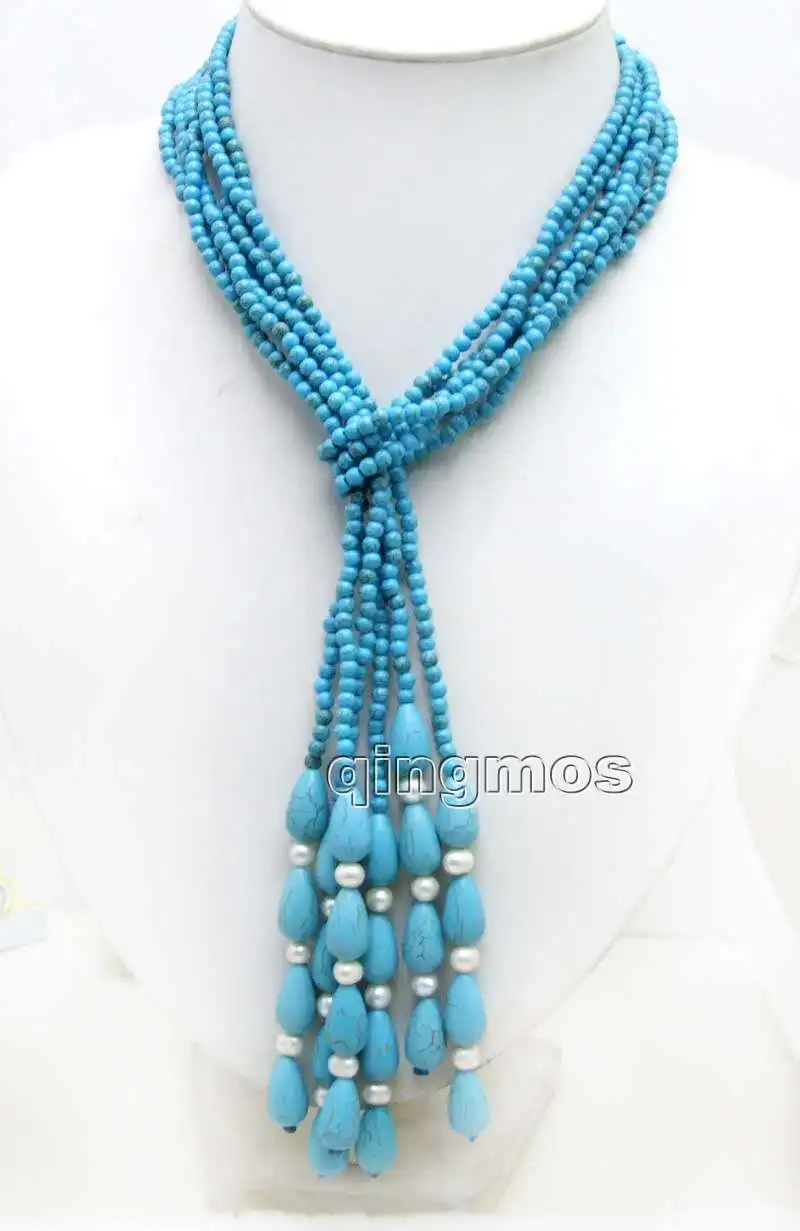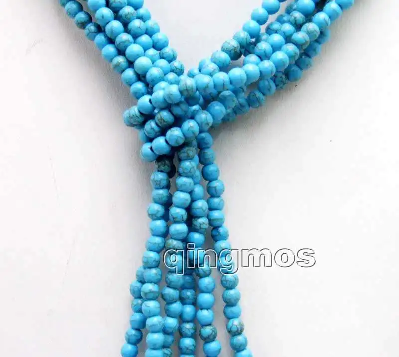SALE SUPER LONG 45" Light Blue 4mm round TURQUOISE 3 Strands NECKLACE-nec5739