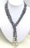 SALE SUPER LONG 45" Light Blue 4mm round Stone 3 Strands NECKLACE-nec5739 Wholesale/retail Free shipping