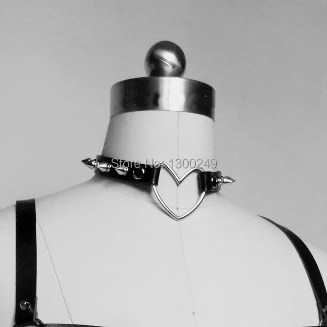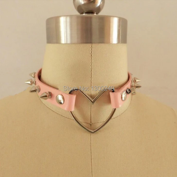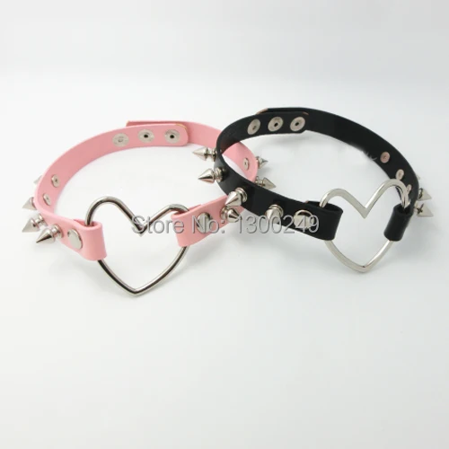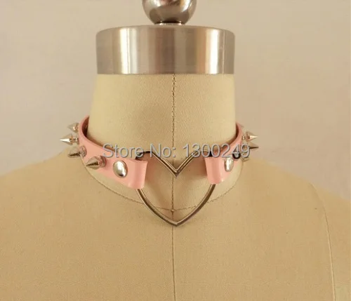 Sexy Fashion Choker Harajuku NEW Hot Dark Rivet handmade Leather sweet heart punk Necklaces torque goth Free shipping