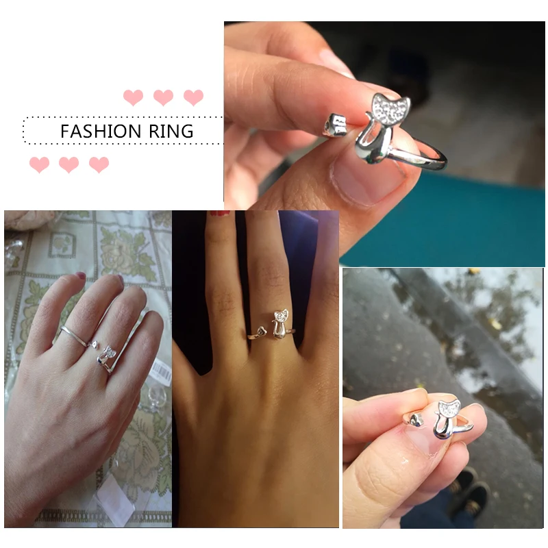 SHUANGR Top Quality Cubic Zirconia Crystal Inlaid Cute Animal Cat Ring for Women/Girls
