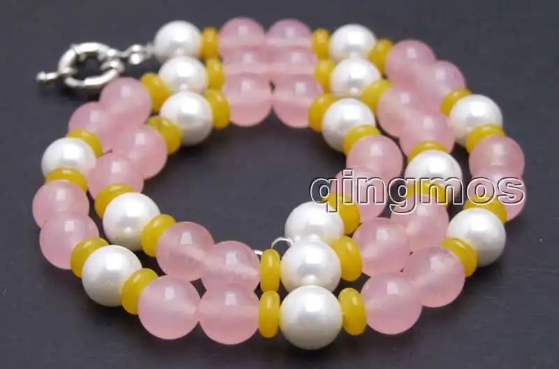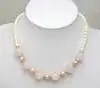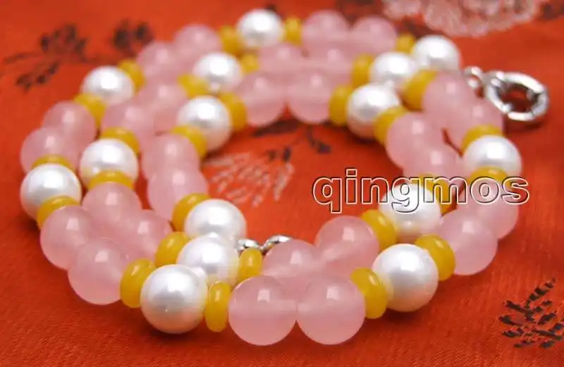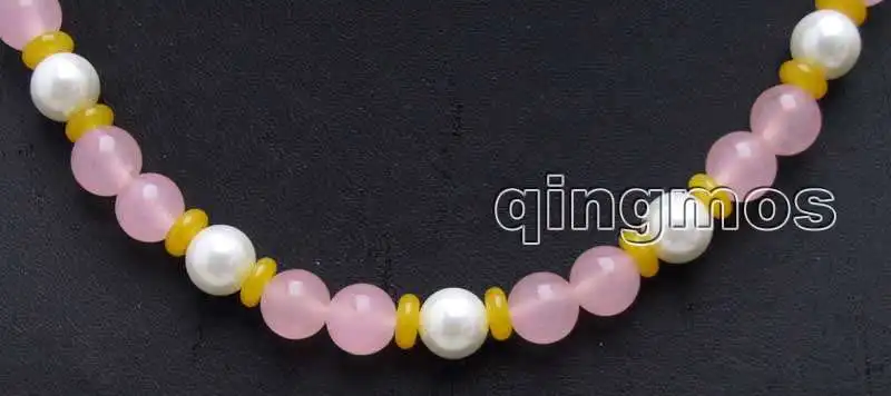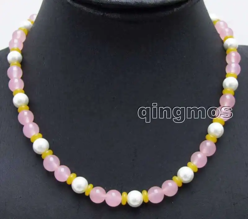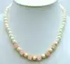 SALE Small 8mm pink Round jade and White Sea shell Pearl 17" necklace-nec6036