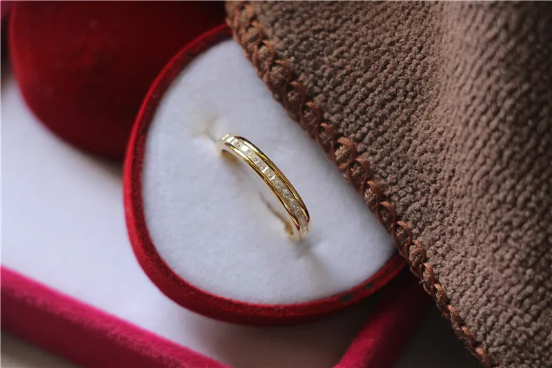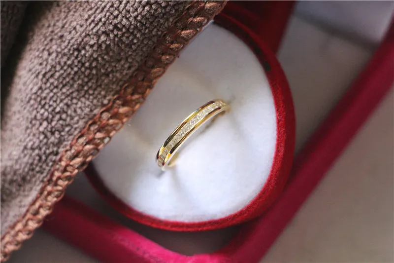 Solid 925 Sterling Silver Ring Yellow Gold Color Diamond Band Splendid 0.23Ct Princess Cut Micro-paved Ring