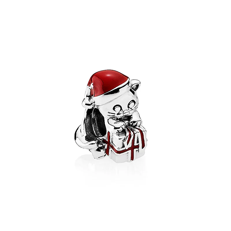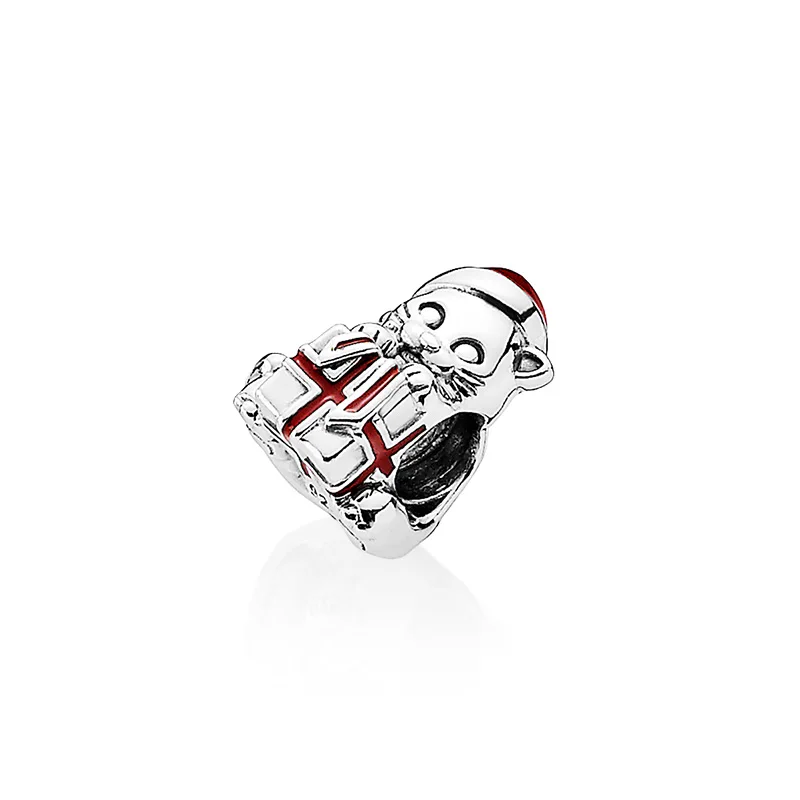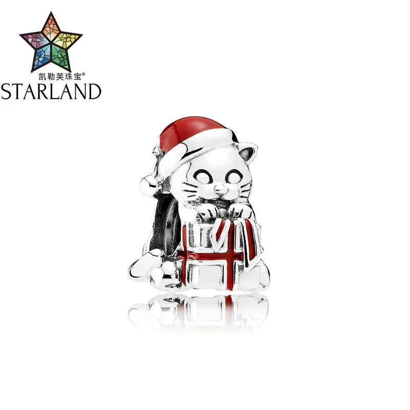 Starland Fashion 925 Sterling Silver Christmas Cat Red Enmal Charm Purple Clear CZ Beads Fit Original Bracelet Women DIY Jewelry