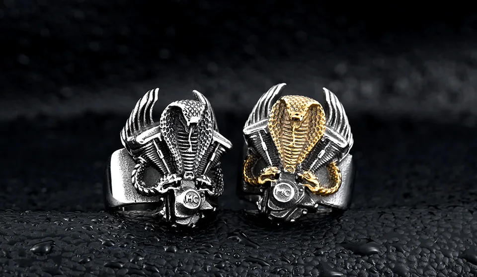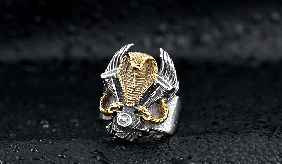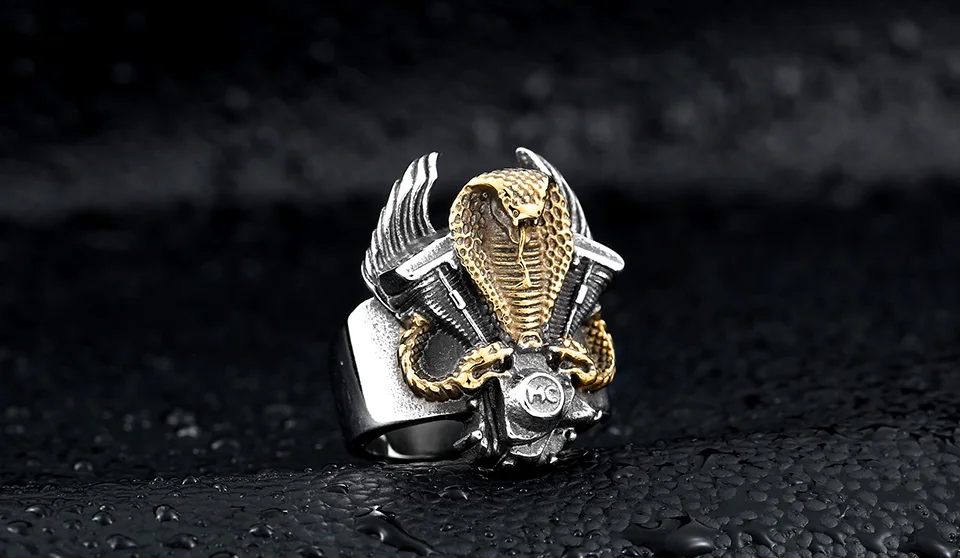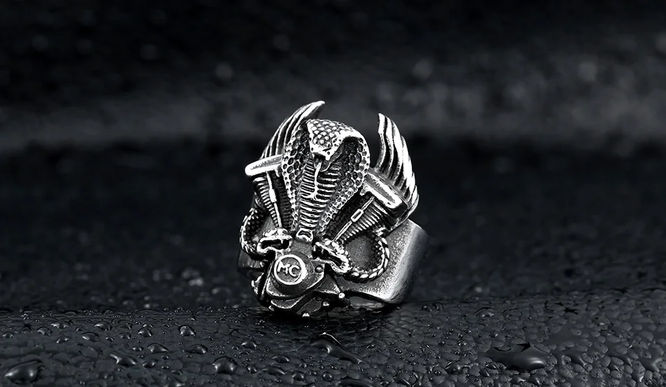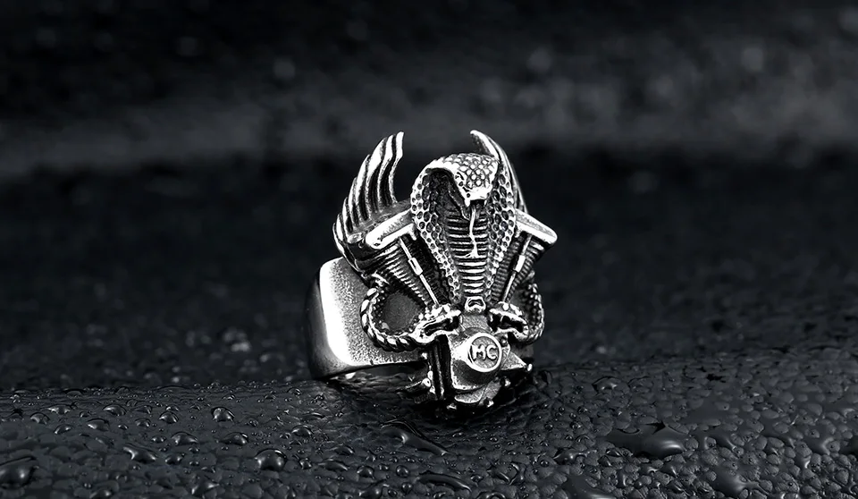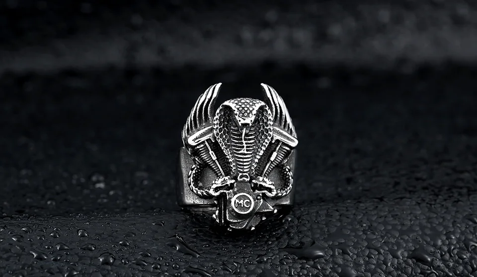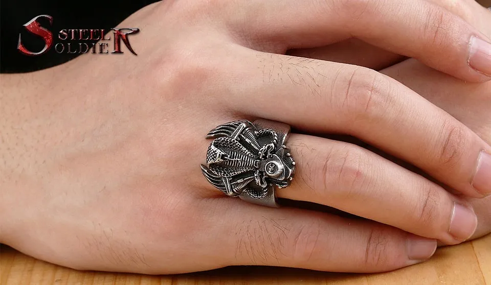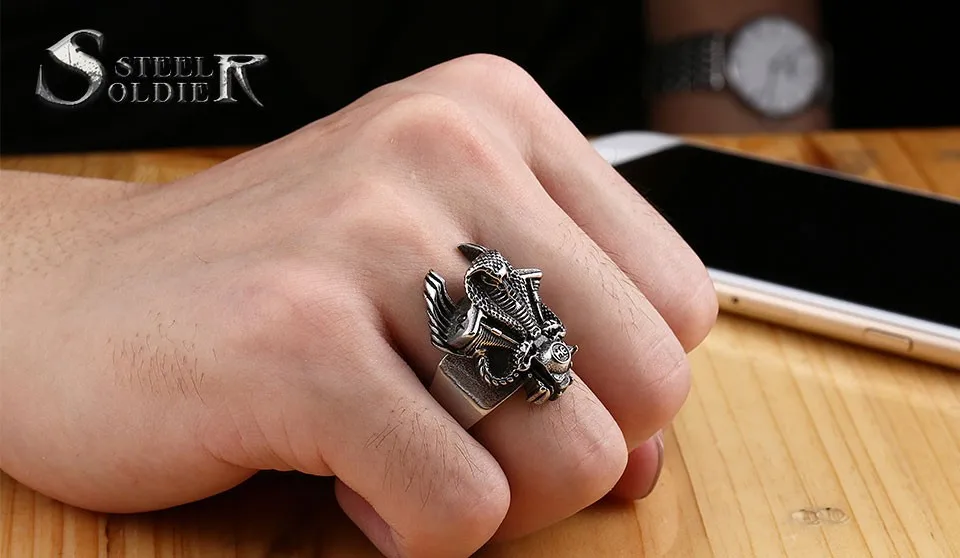Steel soldier retro snake biker ring stainless steel punk personality motor cycle men adjustable jewelry