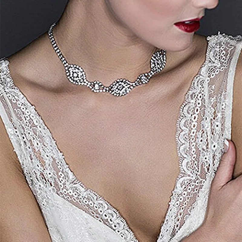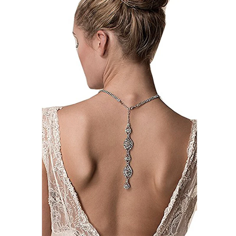 Name:StoneFans Bridal Back Drop Crystal Necklace Wedding Jewelry Brides Chunky Linked Statement Collar Necklace Choker Fashion Gifts