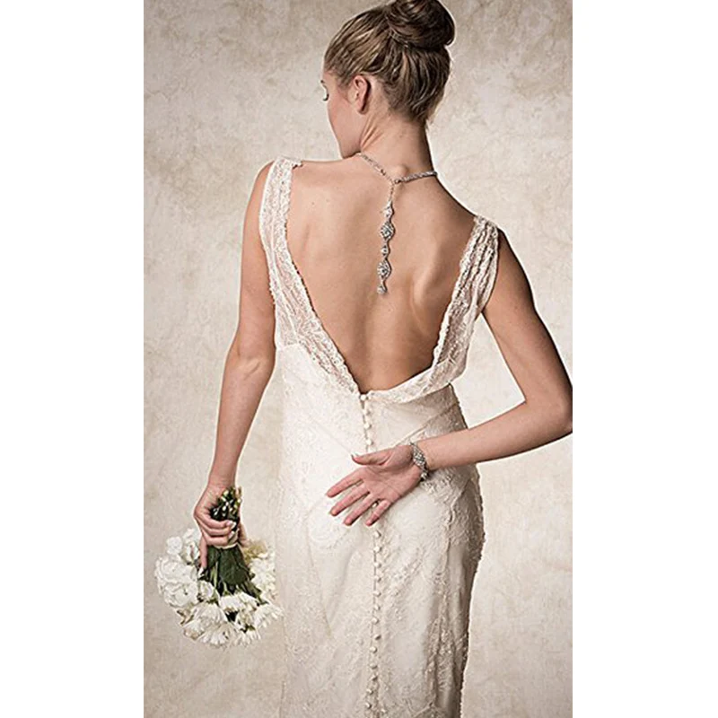 StoneFans Bridal Back Drop Crystal Necklace Wedding Jewelry Brides Chunky Linked Statement Collar Necklace Choker Fashion Gifts