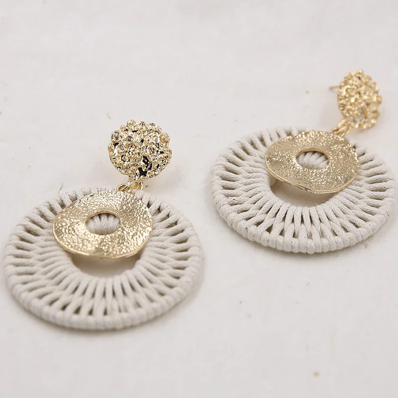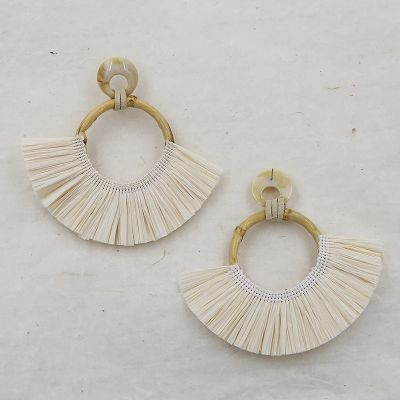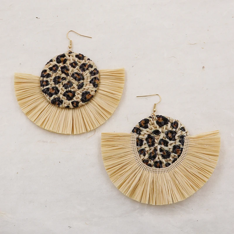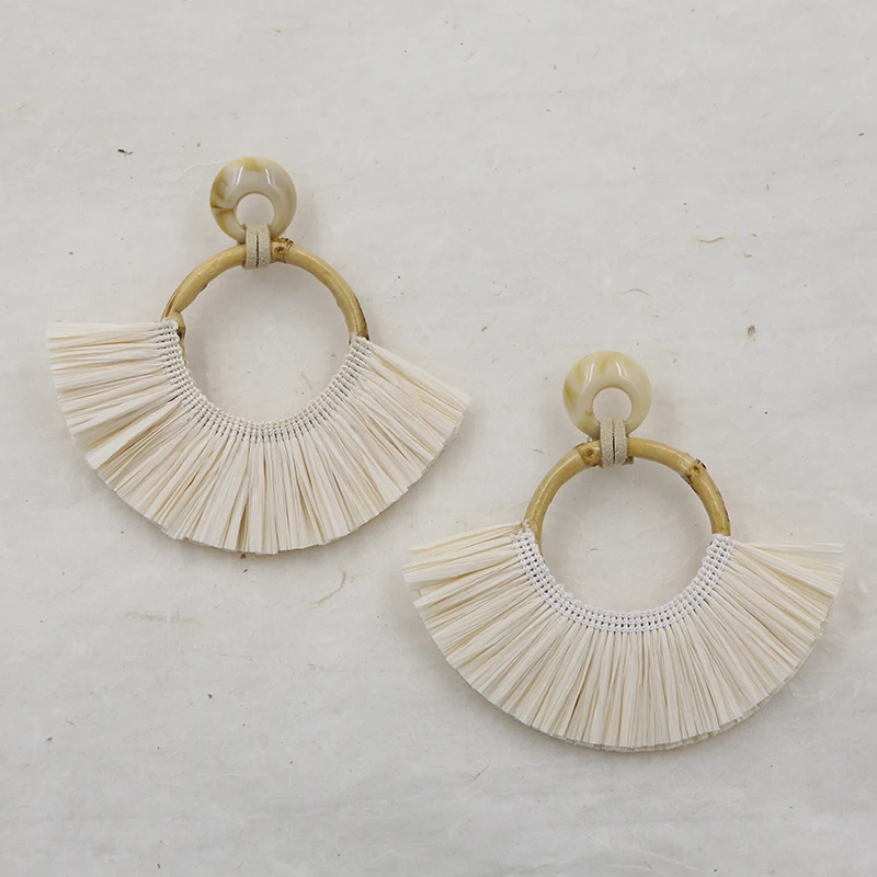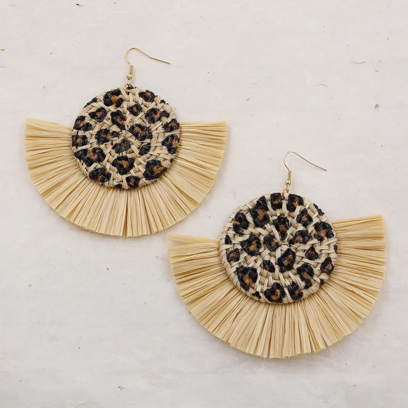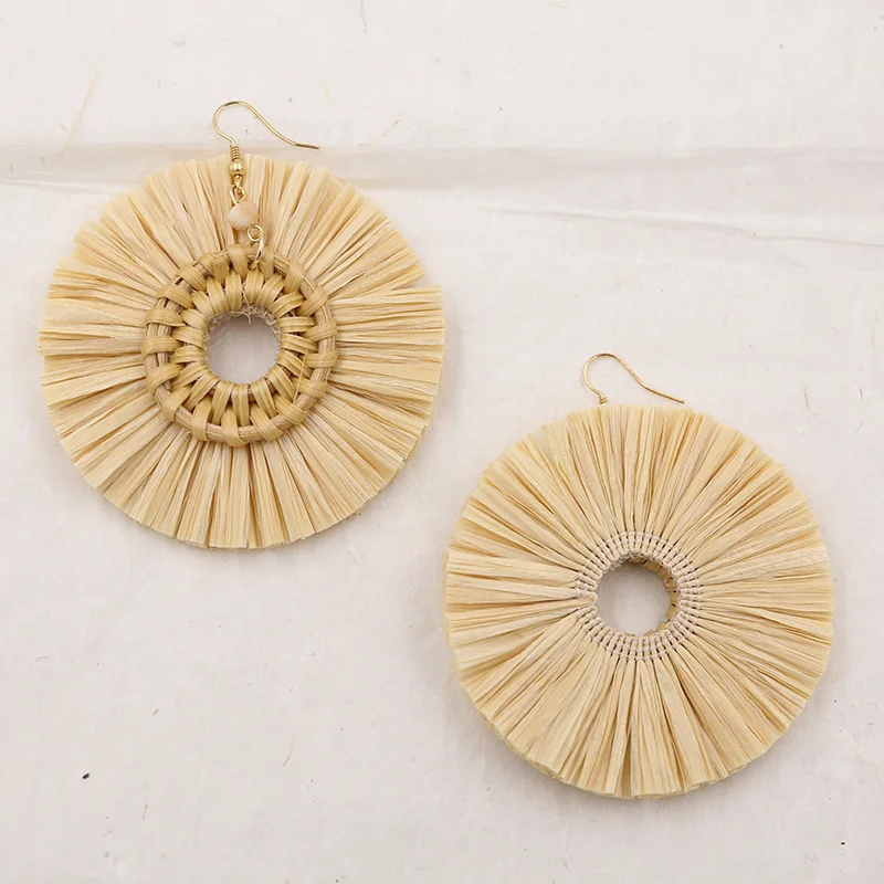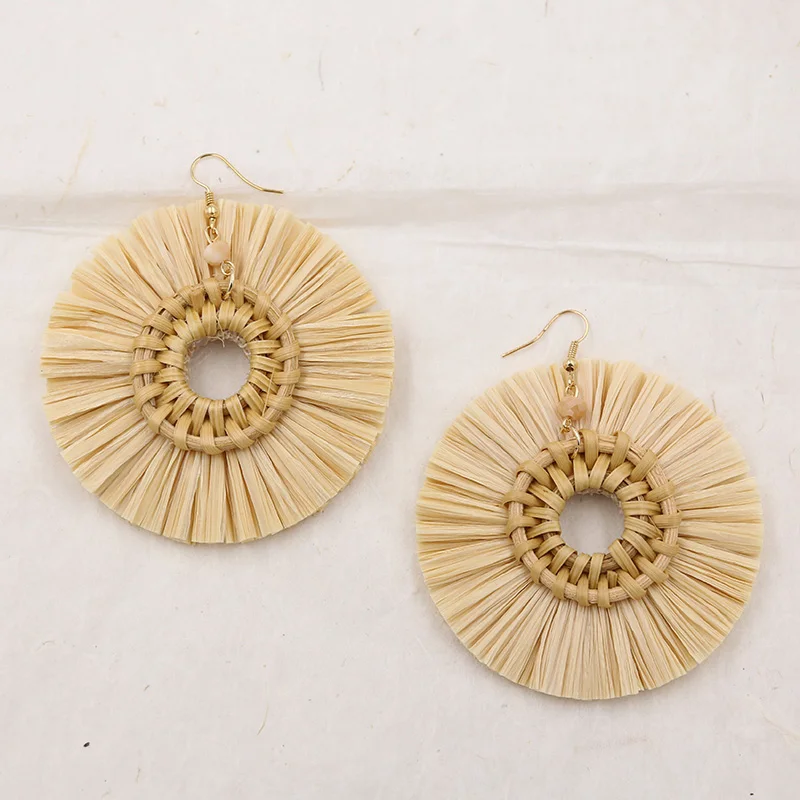 Teardrop Straw Tassel Earrings For Women Rattan Wicker Drop Earring Long Raffia Earrings Handmade DIY Jewelry