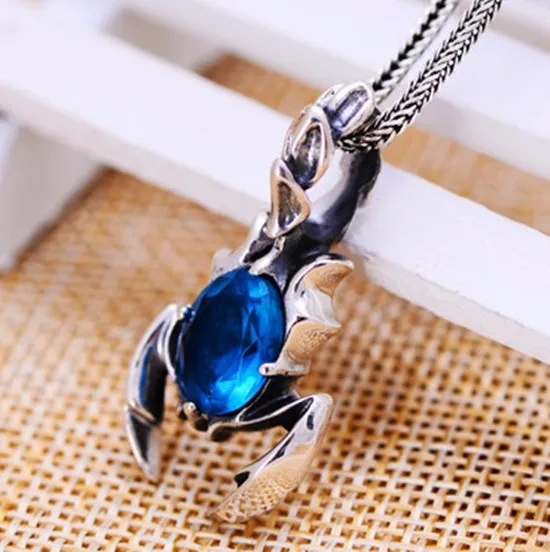 Thai Silver retro Thai silver jewelry wholesale s925 silver blue crystal pendant scorpion pendant men and women free shipping