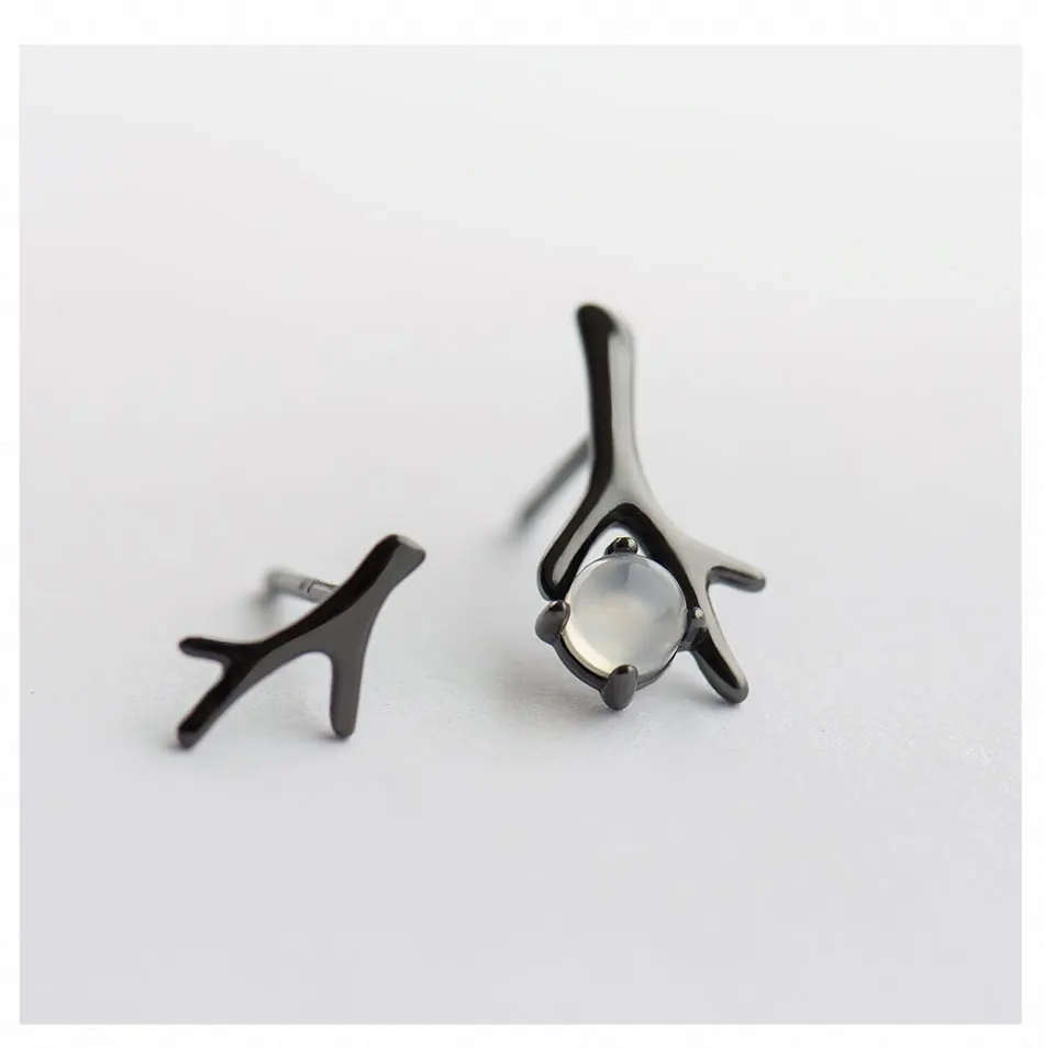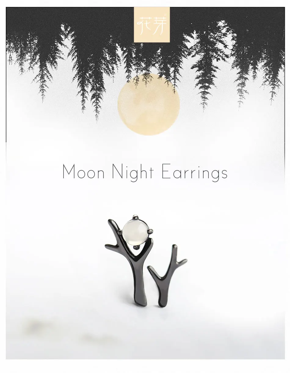 Thaya Moon night design stud earrings moonstone Black s925 sterling silver earrings for women punk elegant style jewelry gift