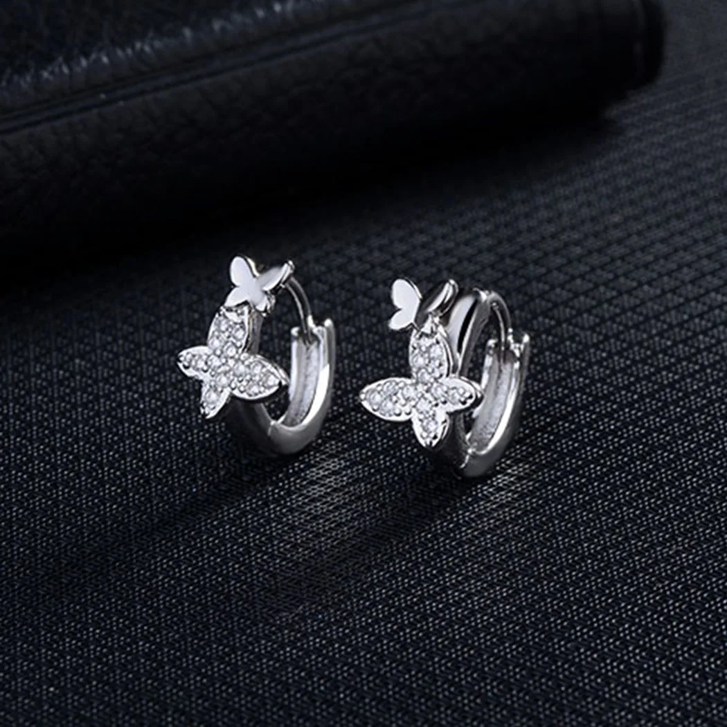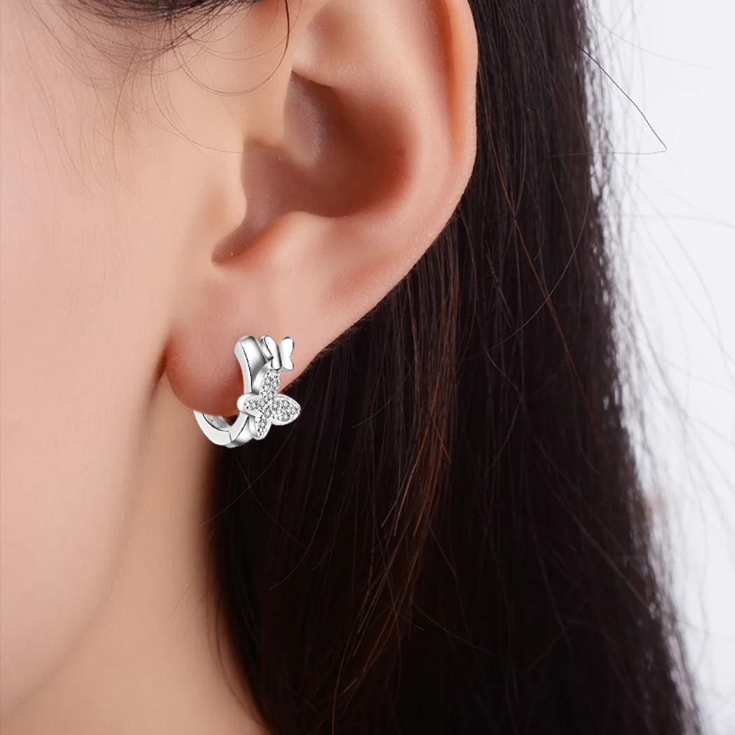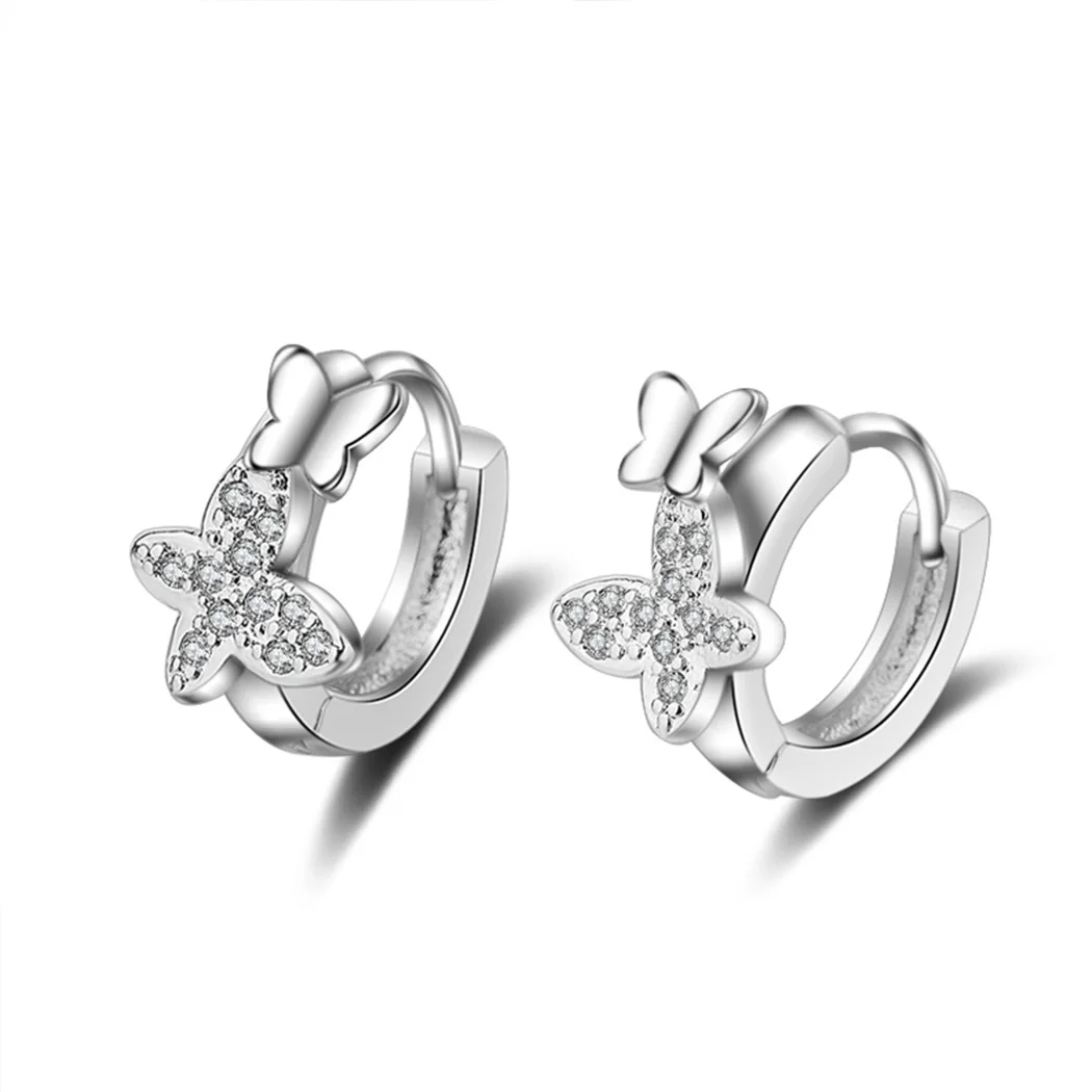 Todorova Double Butterfly Zircon Small Hoop Earrings for Baby Girls Cute Crystal Animal Loop Huggies Earring Jewelry